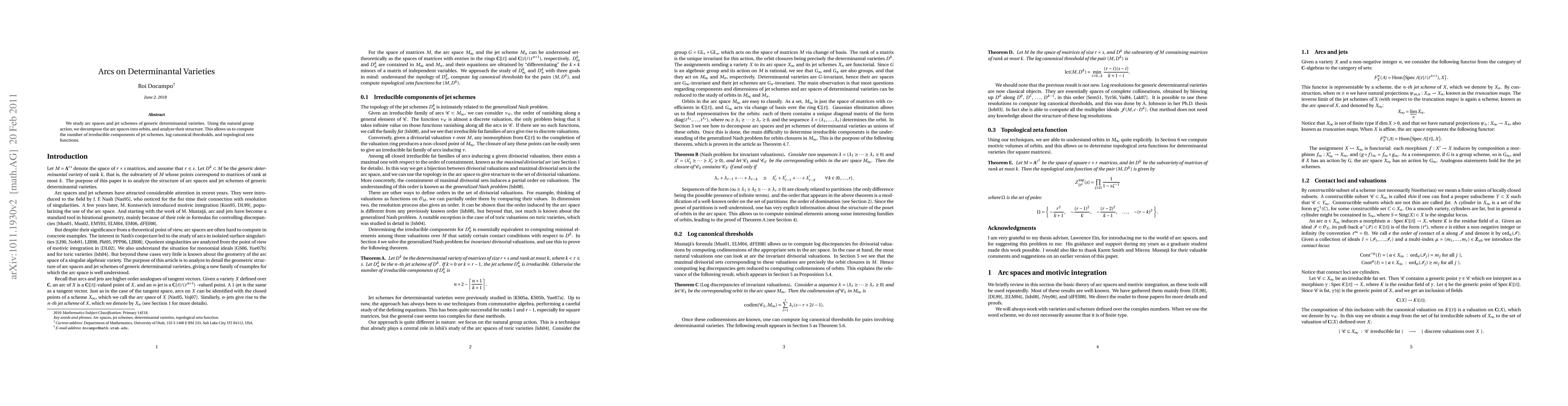 This paper investigates the arc spaces and jet schemes of determinantal varieties, leveraging group actions to decompose arc spaces into orbits. It computes the number of irreducible components of jet schemes, log canonical thresholds, and topological zeta functions, providing insights into their structural properties.