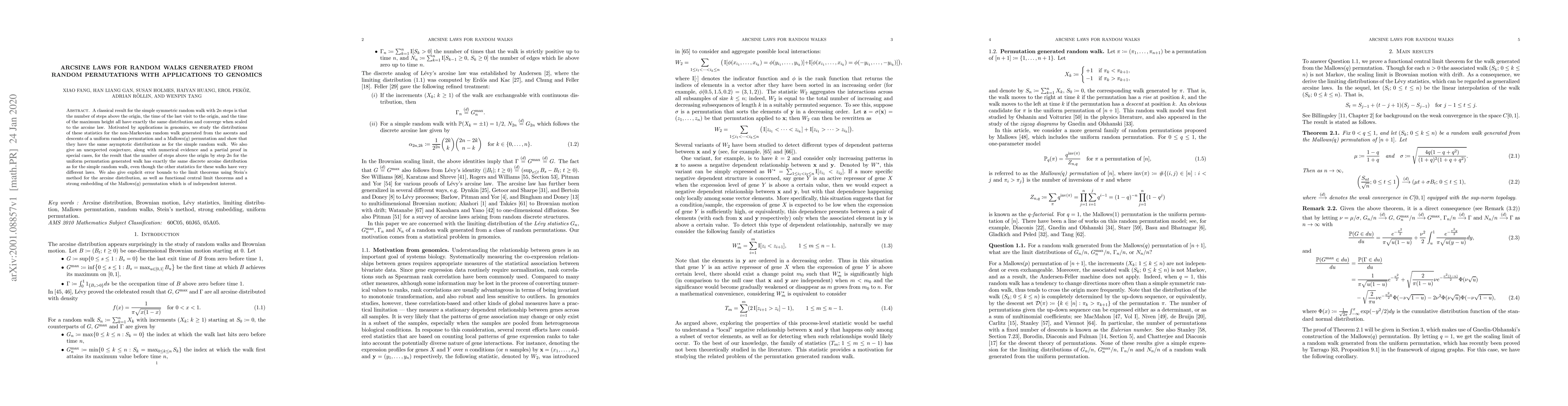 This paper explores the arcsine laws for random walks generated from random permutations, showing they share the same asymptotic distributions as simple symmetric random walks. It also proposes a conjecture about the discrete arcsine distribution for the number of steps above the origin in uniform permutation-generated walks, supported by numerical evidence and partial proofs.