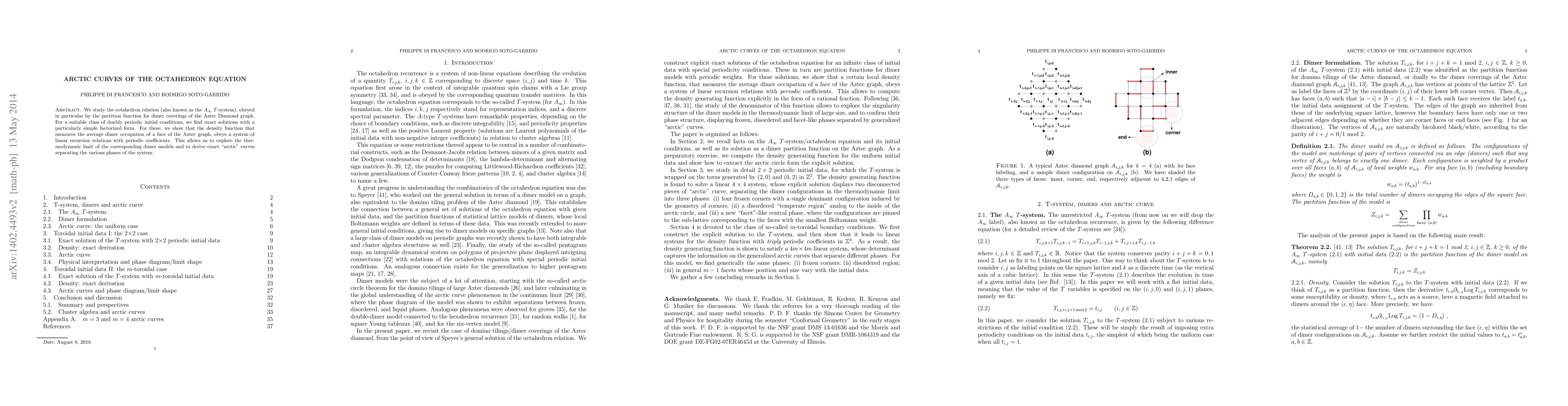 We study the octahedron relation (also known as the $A_{\infty}$ $T$-system), obeyed in particular by the partition function for dimer coverings of the Aztec Diamond graph. For a suitable class of doubly periodic initial conditions, we find exact solutions with a particularly simple factorized form. For these, we show that the density function that measures the average dimer occupation of a face of the Aztec graph, obeys a system of linear recursion relations with periodic coefficients. This allows us to explore the thermodynamic limit of the corresponding dimer models and to derive exact "arctic" curves separating the various phases of the system.