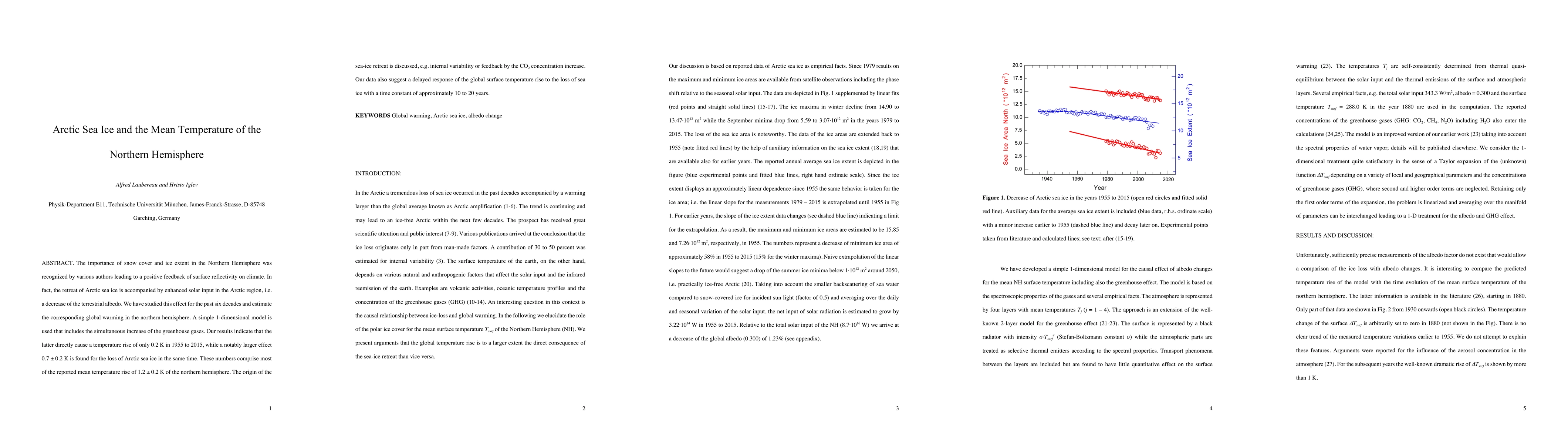 The importance of snow cover and ice extent in the Northern Hemisphere was recognized by various authors leading to a positive feedback of surface reflectivity on climate. In fact, the retreat of Arctic sea ice is accompanied by enhanced solar input in the Arctic region, i.e. a decrease of the terrestrial albedo. We have studied this effect for the past six decades and estimate the corresponding global warming in the northern hemisphere. A simple 1-dimensional model is used that includes the simultaneous increase of the greenhouse gases. Our results indicate that the latter directly cause a temperature rise of only 0.2 K in 1955 to 2015, while a notably larger effect 0.7 +/- 0.2 K is found for the loss of Arctic sea ice in the same time. These numbers comprise most of the reported mean temperature rise of 1.2 +/- 0.2 K of the northern hemisphere. The origin of the sea-ice retreat is discussed, e.g. internal variability or feedback by the CO2 concentration increase. Our data also suggest a delayed response of the global surface temperature rise to the loss of sea ice with a time constant of approximately 10 to 20 years.