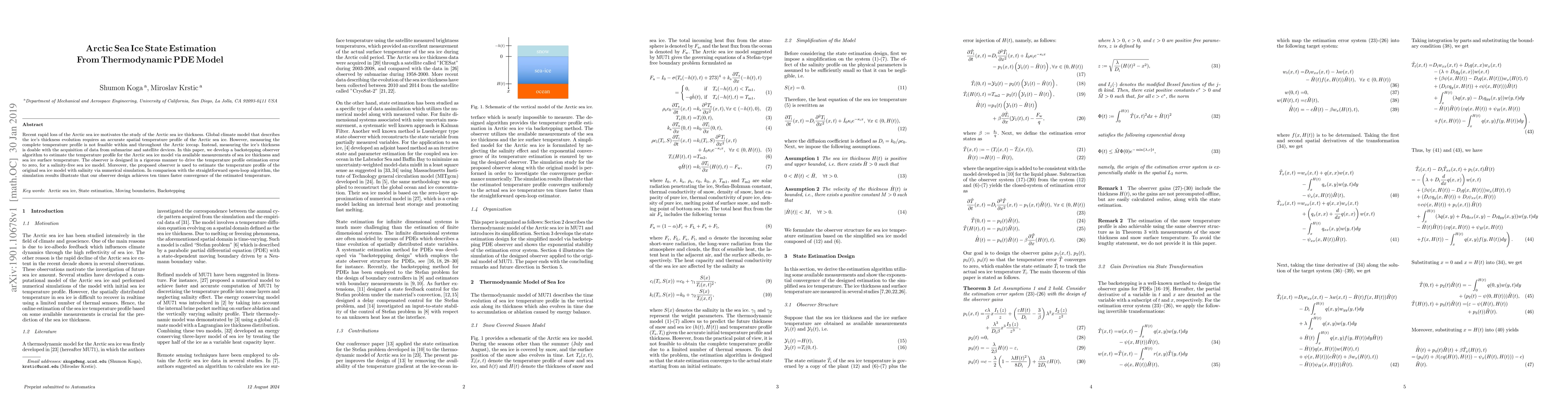 This paper develops a backstepping observer algorithm to estimate Arctic sea ice temperature profiles using measurements of ice thickness and surface temperature. The observer drives the estimation error to zero and achieves a ten-fold faster convergence compared to open-loop methods, as demonstrated through numerical simulations.