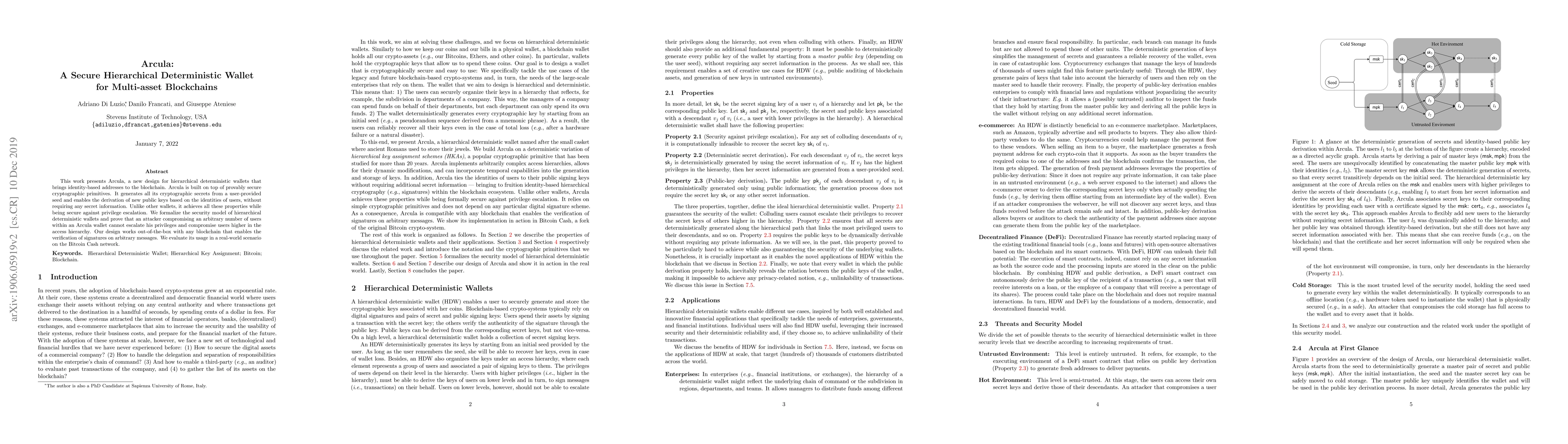 This work presents Arcula, a new design for hierarchical deterministic wallets that brings identity-based addresses to the blockchain. Arcula is built on top of provably secure cryptographic primitives. It generates all its cryptographic secrets from a user-provided seed and enables the derivation of new public keys based on the identities of users, without requiring any secret information. Unlike other wallets, it achieves all these properties while being secure against privilege escalation. We formalize the security model of hierarchical deterministic wallets and prove that an attacker compromising an arbitrary number of users within an Arcula wallet cannot escalate his privileges and compromise users higher in the access hierarchy. Our design works out-of-the-box with any blockchain that enables the verification of signatures on arbitrary messages. We evaluate its usage in a real-world scenario on the Bitcoin Cash network.