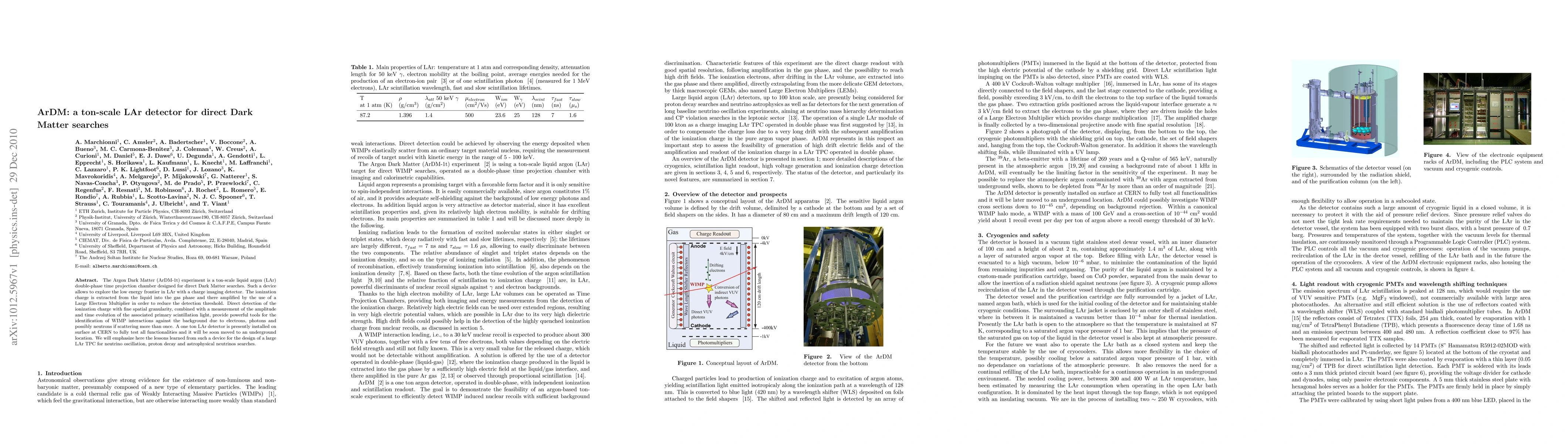 The ArDM-1t experiment employs a ton-scale liquid argon time projection chamber for direct Dark Matter searches, utilizing charge imaging and scintillation light measurements to distinguish WIMP interactions from background noise. Lessons from this device inform the design of large liquid argon detectors for neutrino oscillation, proton decay, and astrophysical neutrino studies.
