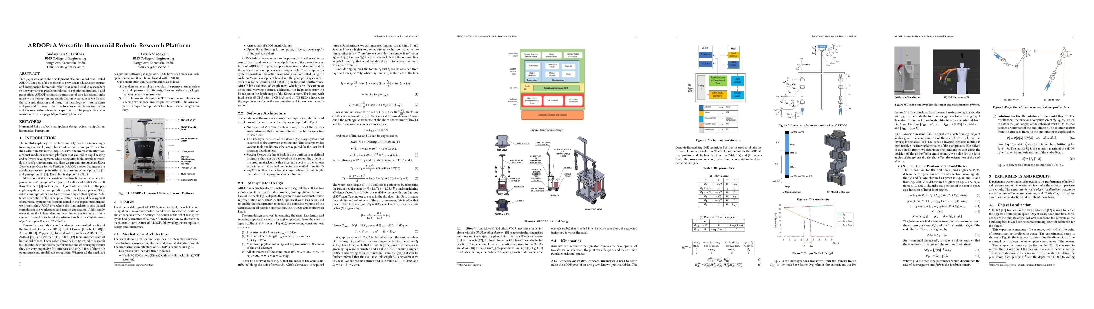 This paper describes the development of a humanoid robot called ARDOP. The goal of the project is to provide a modular, open-source, and inexpensive humanoid robot that would enable researchers to answer various problems related to robotic manipulation and perception. ARDOP primarily comprises of two functional units namely the perception and manipulation system, here we discuss the conceptualization and design methodology of these systems and proceed to present their performance results on simulation and various custom-designed experiments.