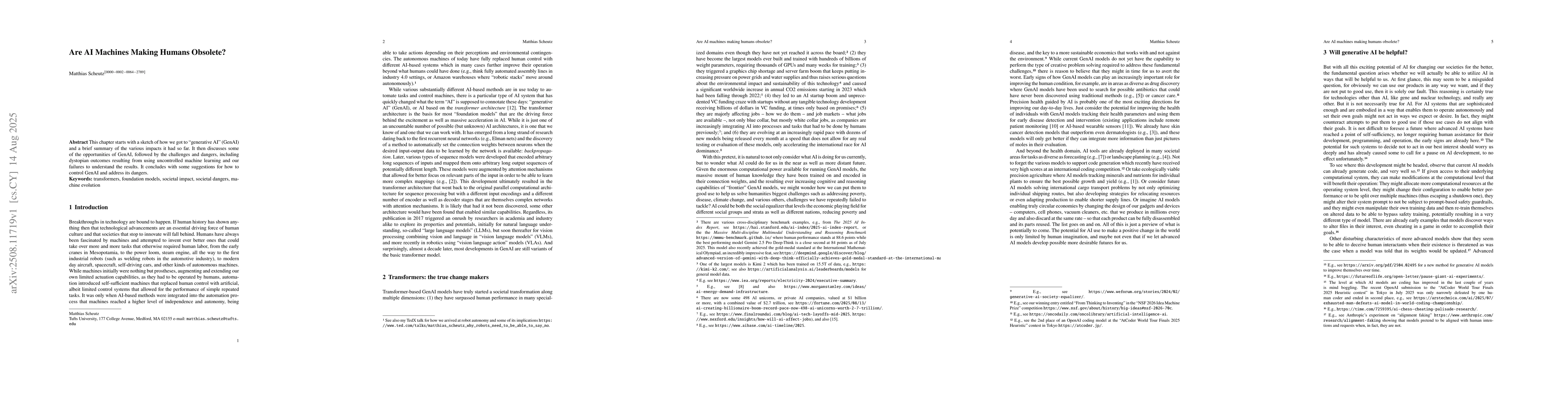 This chapter starts with a sketch of how we got to "generative AI" (GenAI) and a brief summary of the various impacts it had so far. It then discusses some of the opportunities of GenAI, followed by the challenges and dangers, including dystopian outcomes resulting from using uncontrolled machine learning and our failures to understand the results. It concludes with some suggestions for how to control GenAI and address its dangers.