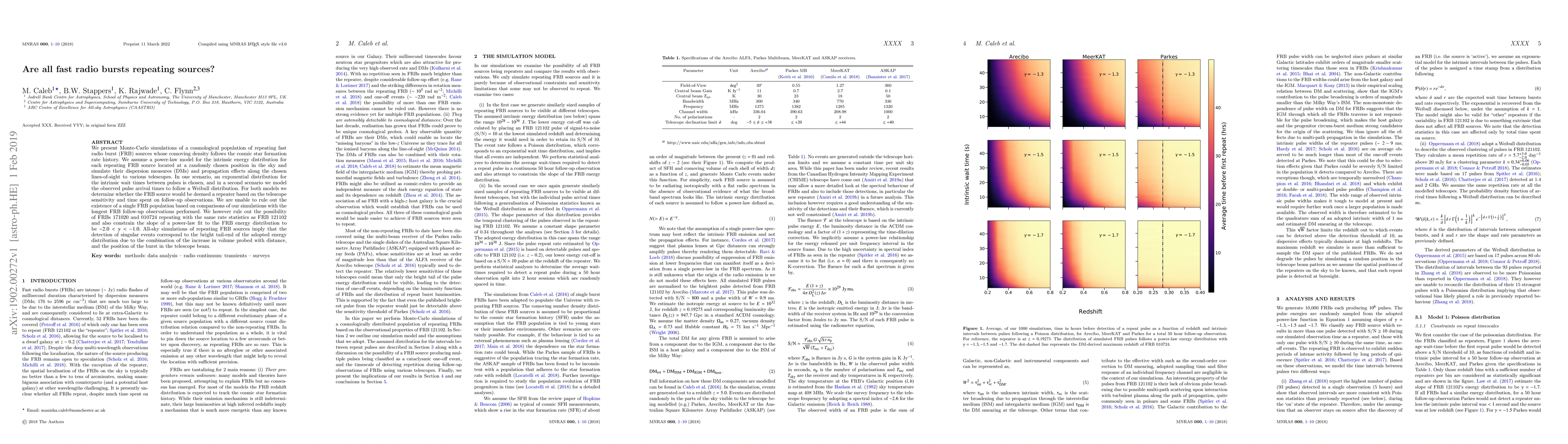 This study uses simulations to explore whether all fast radio bursts (FRBs) are from repeating sources, finding it difficult to rule out a single population. It also constrains the energy distribution and repetition rates of specific FRBs, suggesting many observed bursts may be the brightest events from a common underlying source population.