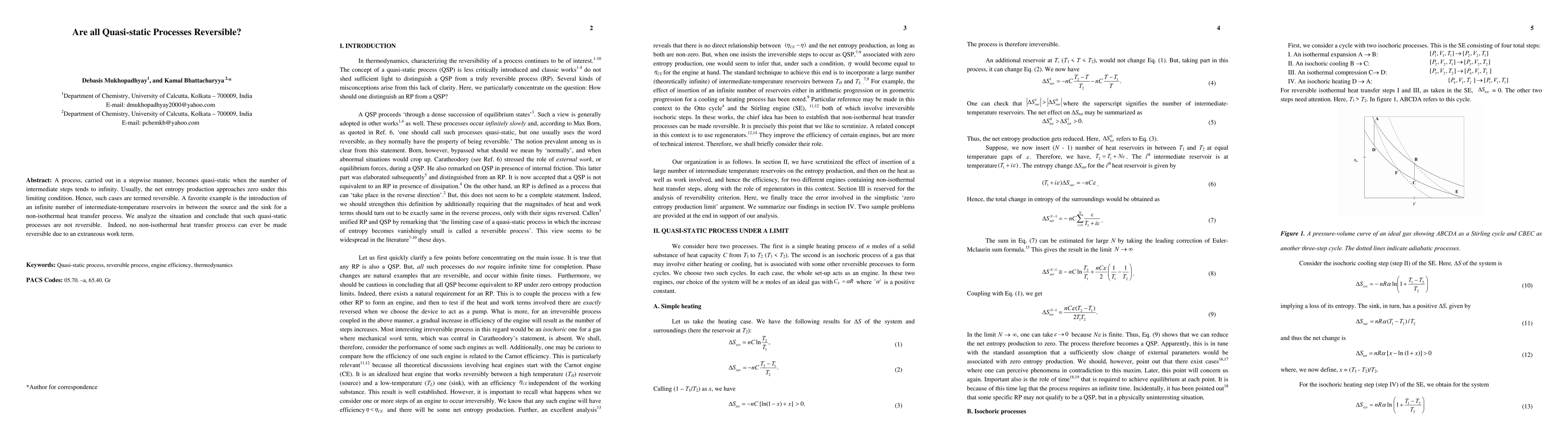 This paper argues that quasi-static processes, which approach reversibility by taking an infinite number of intermediate steps, are not truly reversible. It concludes that non-isothermal heat transfer processes cannot be made reversible due to the presence of an extraneous work term.