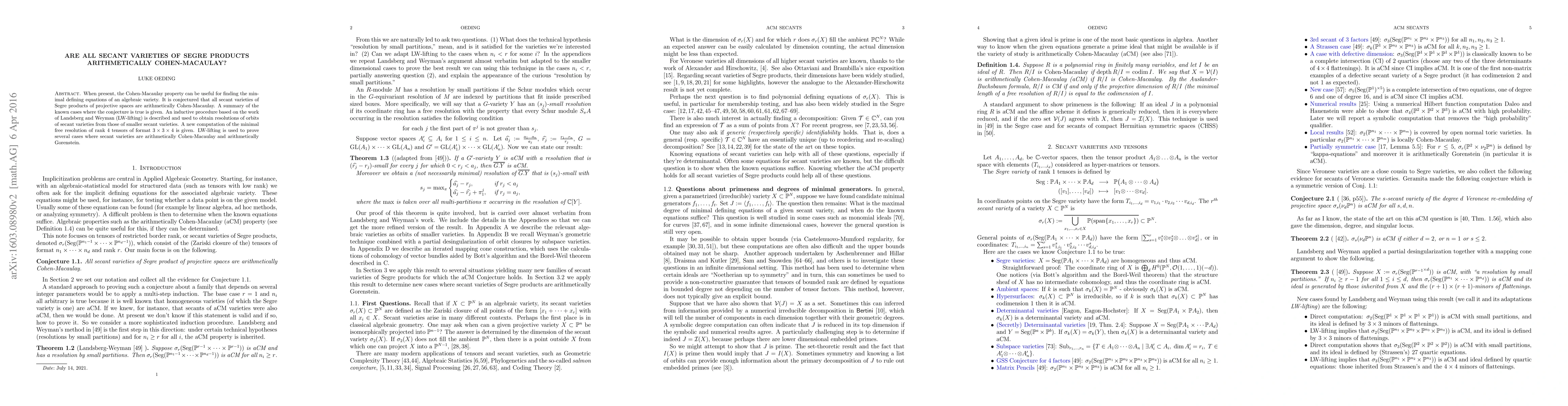 Summary: This paper investigates the conjecture that all secant varieties of Segre products of projective spaces are arithmetically Cohen-Macaulay, providing resolutions for certain cases using an inductive procedure known as LW-lifting, and proving several instances where these secant varieties are arithmetically Cohen-Macaulay and Gorenstein.