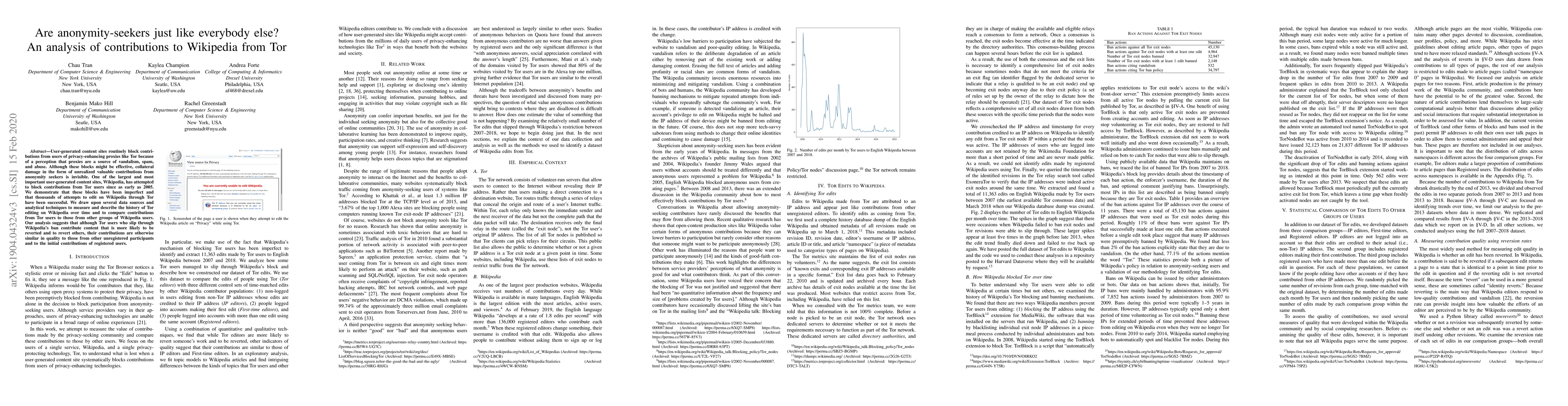 This research highlights the potential value of creating a pathway for Tor contributors to engage with Wikipedia, potentially exceeding the potential harm caused by current systemic blocking.