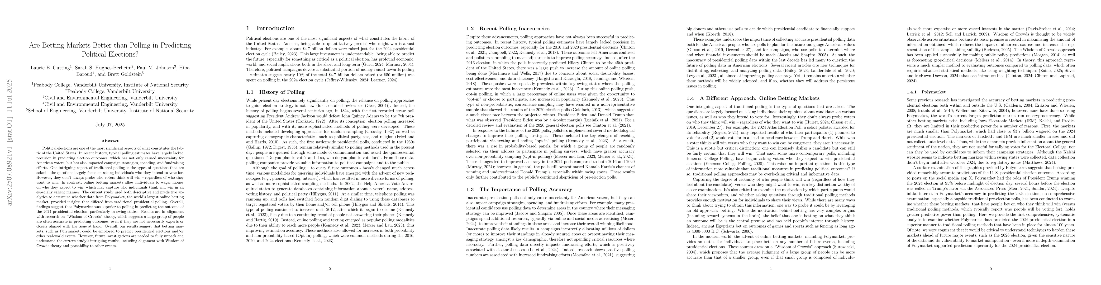 Political elections are one of the most significant aspects of what constitutes the fabric of the United States. In recent history, typical polling estimates have largely lacked precision in predicting election outcomes, which has not only caused uncertainty for American voters, but has also impacted campaign strategies, spending, and fundraising efforts. One intriguing aspect of traditional polling is the types of questions that are asked -- the questions largely focus on asking individuals who they intend to vote for. However, they don't always probe who voters think will win -- regardless of who they want to win. In contrast, online betting markets allow individuals to wager money on who they expect to win, which may capture who individuals think will win in an especially salient manner. The current study used both descriptive and predictive analytics to determine whether data from Polymarket, the world's largest online betting market, provided insights that differed from traditional presidential polling. Overall, findings suggest that Polymarket was superior to polling in predicting the outcome of the 2024 presidential election, particularly in swing states. Results are in alignment with research on ''Wisdom of Crowds'' theory, which suggests a large group of people are often accurate in predicting outcomes, even if they are not necessarily experts or closely aligned with the issue at hand. Overall, our results suggest that betting markets, such as Polymarket, could be employed to predict presidential elections and/or other real-world events. However, future investigations are needed to fully unpack and understand the current study's intriguing results, including alignment with Wisdom of Crowds theory and portability to other events.