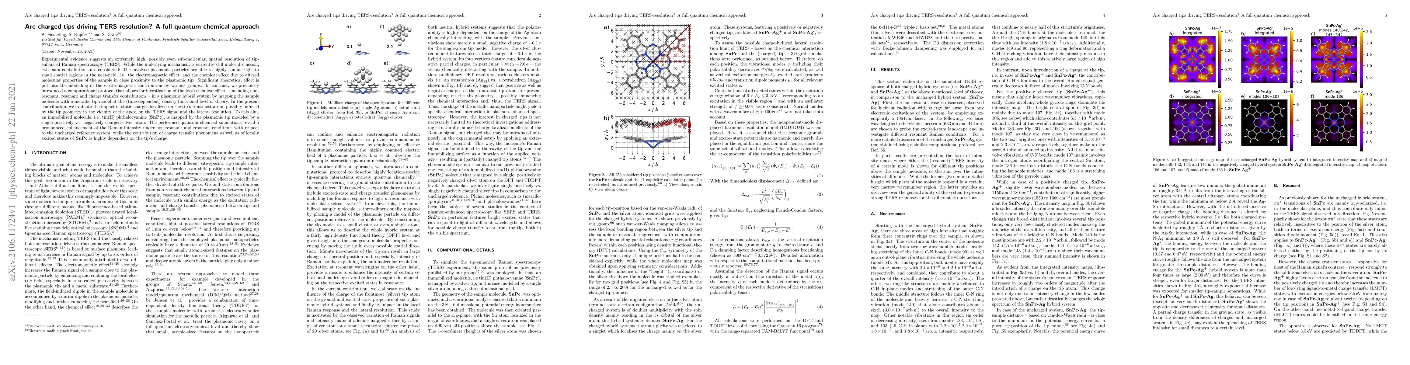 Experimental evidence suggests an extremely high, possibly even sub-molecular, spatial resolution of tip-enhanced Raman spectroscopy. While the underlying mechanism is currently still under discussion, two main contributions are considered: The involved plasmonic particles are able to highly confine light to small spatial regions in the near-field, i.e. the electromagnetic effect, and the chemical effect due to altered molecular properties of the sample in close proximity to the plasmonic tip. Significant theoretical effort is put into the modelling of the electromagnetic contribution by various groups. In contrast, we previously introduced a computational protocol that allows for investigation of the local chemical effect -- including non-resonant, resonant and charge transfer contributions -- in a plasmonic hybrid system by mapping the sample molecule with a metallic tip model at the (time-dependent) density functional level of theory. In the present contribution, we evaluate the impact of static charges localized on the tip's frontmost atom, possibly induced by the tip geometry in the vicinity of the apex, on the TERS signal and the lateral resolution. To this aim, an immobilized molecule, i.e. tin(II) phthalocyanine (SnPc), is mapped by the plasmonic tip modeled by a single positively vs. negatively charged silver atom. The performed quantum chemical simulations reveal a pronounced enhancement of the Raman intensity under non-resonant and resonant conditions with respect to the uncharged reference system, while the contribution of charge transfer phenomena as well as of locally excited states of SnPc is highly dependent on the tip's charge.