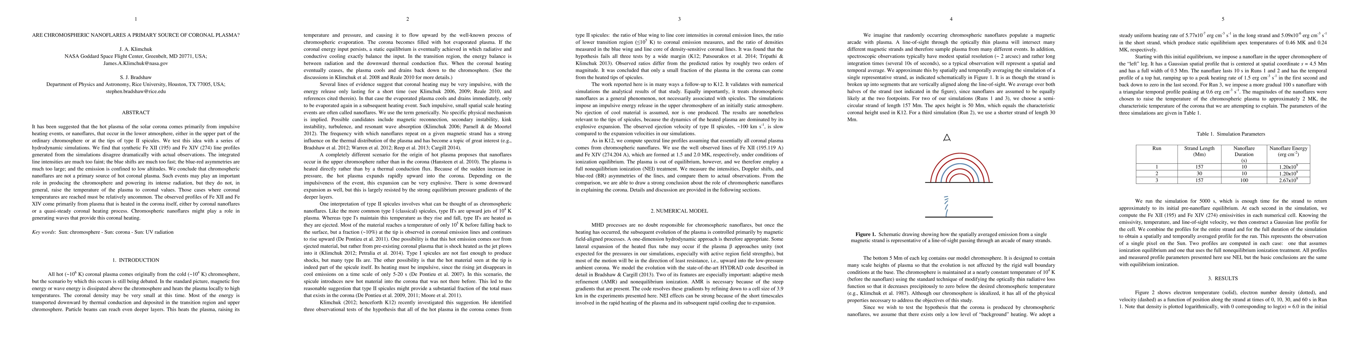 This study uses hydrodynamic simulations to test whether chromospheric nanoflares are the primary source of coronal plasma, finding that synthetic Fe XII and Fe XIV line profiles do not match observations. The research concludes that chromospheric nanoflares are not the main source of coronal plasma, suggesting that coronal heating likely occurs through processes in the corona itself.