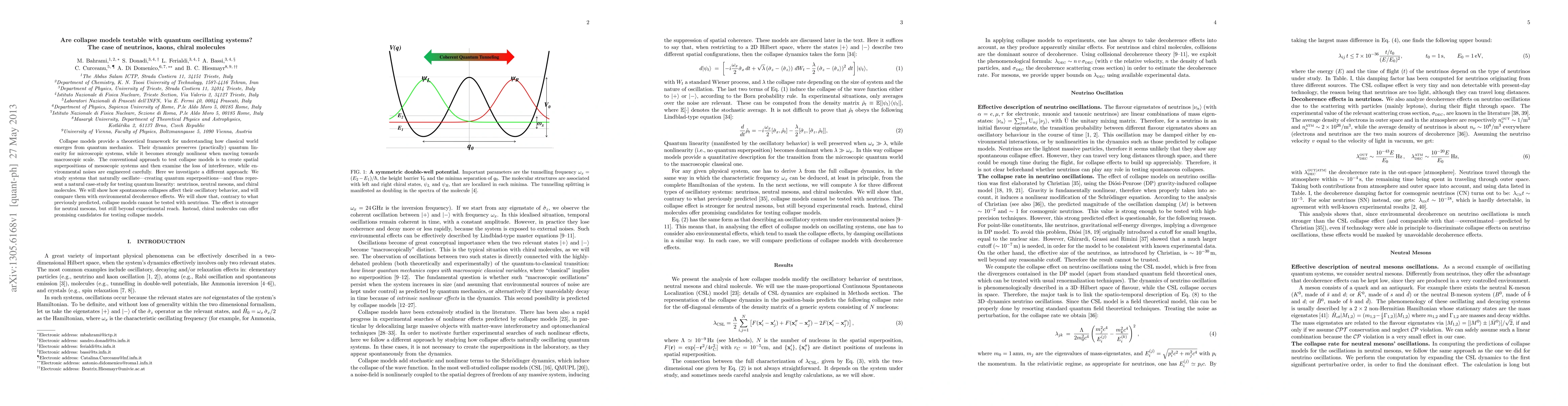 This paper explores the testability of collapse models in quantum mechanics using naturally oscillating systems like neutrinos, neutral mesons, and chiral molecules. It concludes that while chiral molecules present promising candidates for testing, neutrinos and neutral mesons are beyond current experimental reach due to stronger decoherence effects.