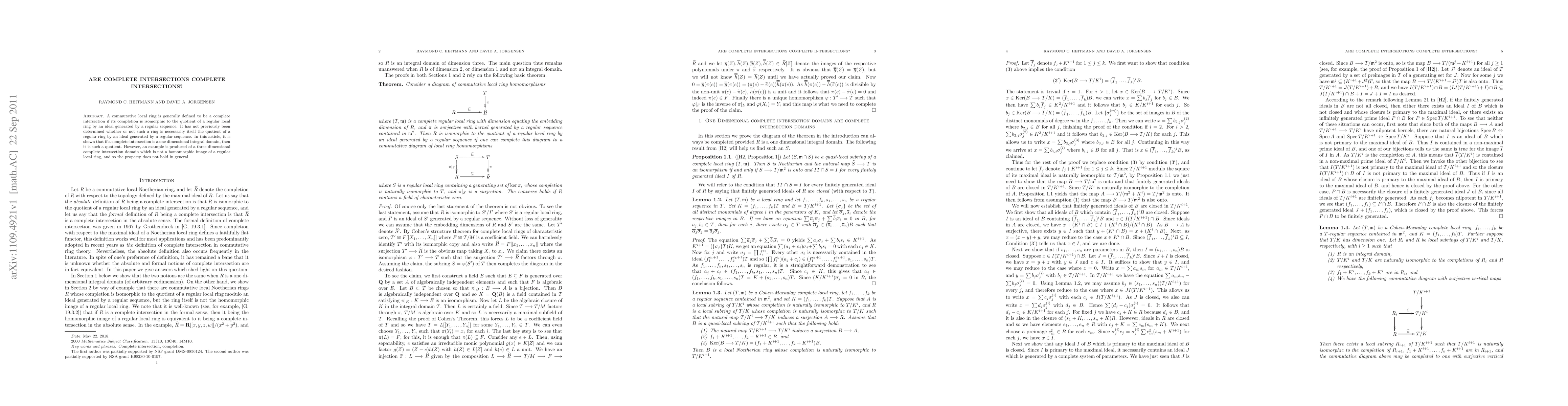 A commutative local ring is generally defined to be a complete intersection if its completion is isomorphic to the quotient of a regular local ring by an ideal generated by a regular sequence. It has not previously been determined whether or not such a ring is necessarily itself the quotient of a regular ring by an ideal generated by a regular sequence. In this article, it is shown that if a complete intersection is a one dimensional integral domain, then it is such a quotient. However, an example is produced of a three dimensional complete intersection domain which is not a homomorphic image of a regular local ring, and so the property does not hold in general.
