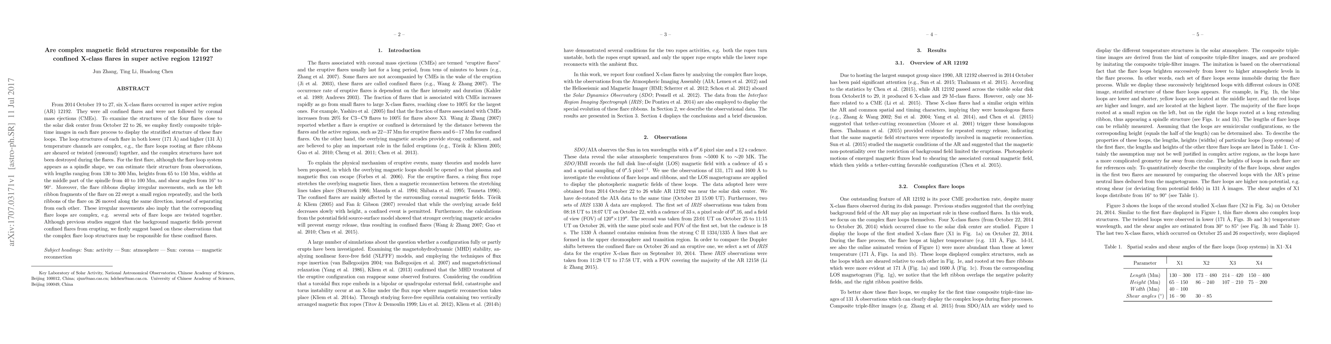 From 2014 October 19 to 27, six X-class flares occurred in super active region (AR) 12192. They were all confined flares and were not followed by coronal mass ejections (CMEs). To examine the structures of the four flares close to the solar disk center from October 22 to 26, we employ firstly composite triple-time images in each flare process to display {the stratified structure} of these flare loops. The loop structures of each flare in both lower (171 {\AA}) and higher (131 {\AA}) temperature channels are complex, e.g., the flare loops rooting at flare ribbons are sheared or twisted (enwound) together, and the complex structures have not been destroyed during the flares. For the first flare, although the flare loop system appears as a spindle shape, we can estimate their structure from observations, with lengths ranging from 130 to 300 Mm, heights from 65 to 150 Mm, widths at the middle part of the spindle from 40 to 100 Mm, and shear angles from 16$^\circ$ to 90$^\circ$. Moreover, the flare ribbons display irregular movements, such as the left ribbon fragments of the flare on 22 swept a small region repeatedly, and the both ribbons of the flare on 26 moved along the same direction, instead of separating from each other. These irregular movements also imply that the corresponding flare loops are complex, e.g. several sets of flare loops are twisted together. Although previous studies suggest that the background magnetic fields prevent confined flares from erupting, we firstly suggest based on these observations that the complex flare loop structures may be responsible for these confined flares.