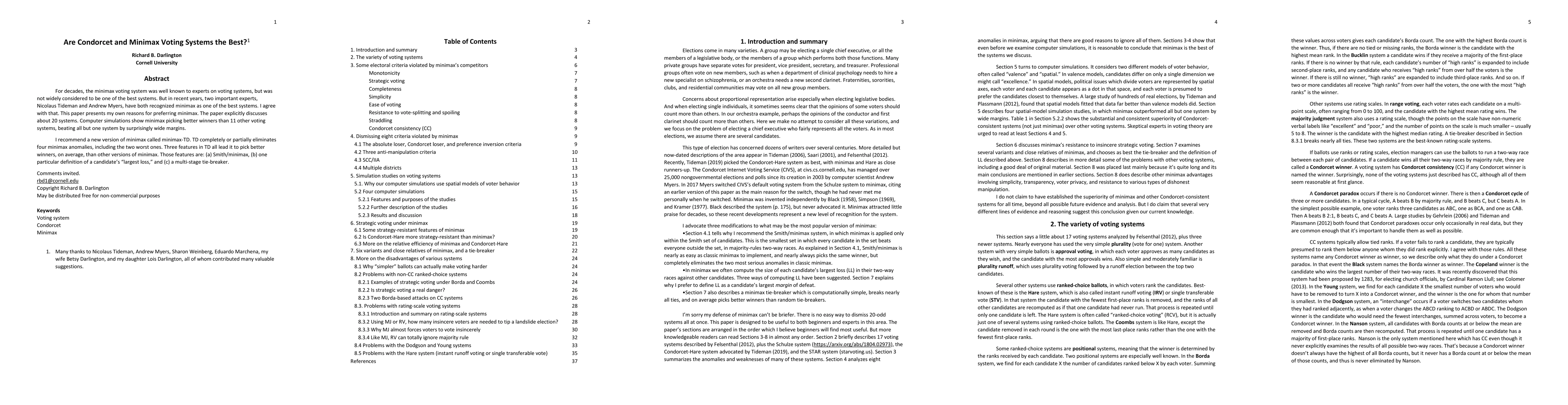 For decades the minimax voting system was well known to experts on voting systems but was not widely considered to be one of the best systems. But in recent years two important experts, Nicolaus Tideman and Andrew Myers, have both recognized minimax as one of the best systems. I agree with that. This paper presents my own reasons for preferring minimax. The paper explicitly discusses about 20 systems.