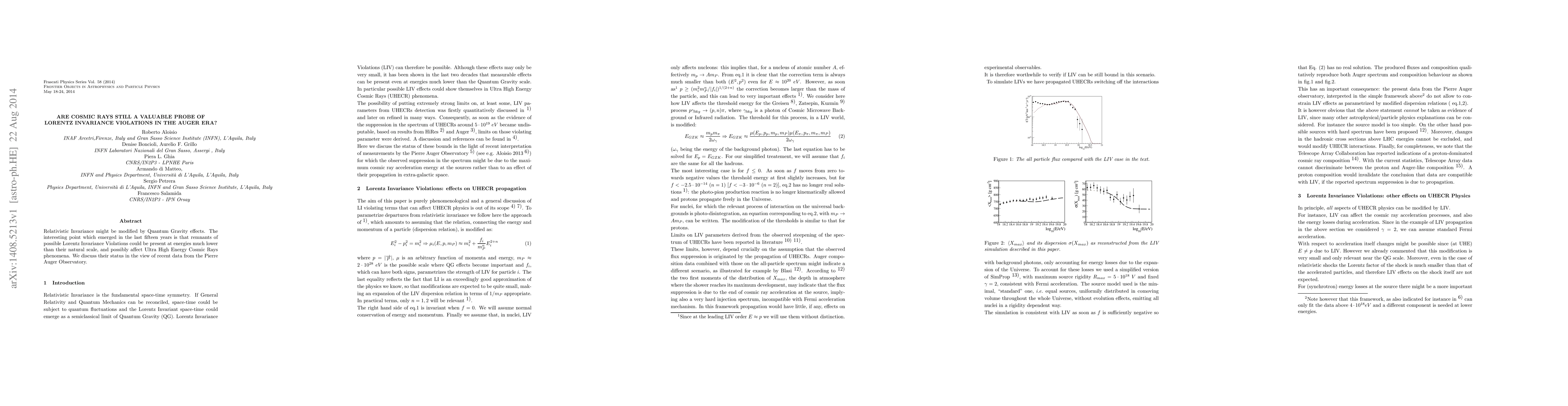 The paper evaluates the relevance of cosmic rays, especially in light of data from the Pierre Auger Observatory, as probes for potential Lorentz Invariance Violations that might arise from Quantum Gravity effects. It discusses if these violations, theoretically expected at extremely high energies, could manifest at lower energies influencing Ultra High Energy Cosmic Rays.
