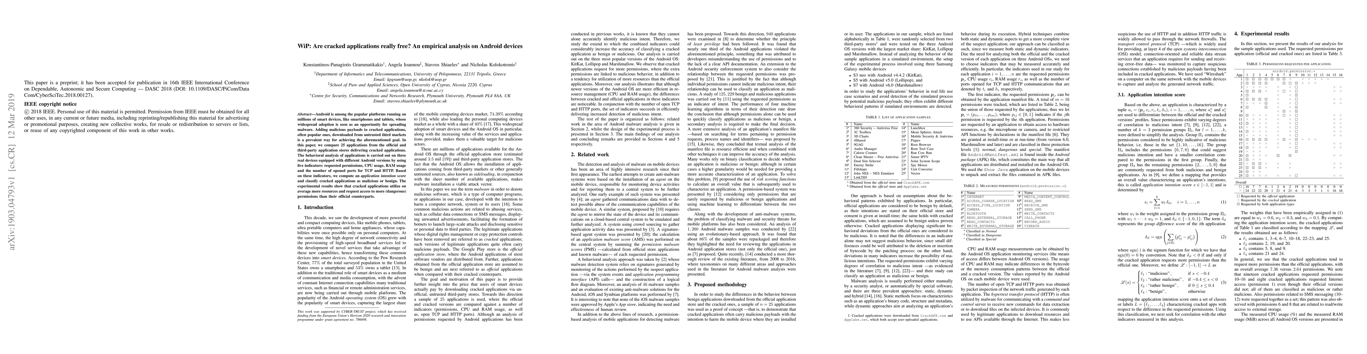 This paper investigates the prevalence of malware in cracked Android applications by comparing 25 cracked apps against their official versions using behavioral analysis on three devices. Results show that cracked apps tend to request more permissions and consume more resources, indicating a higher likelihood of being malicious.
