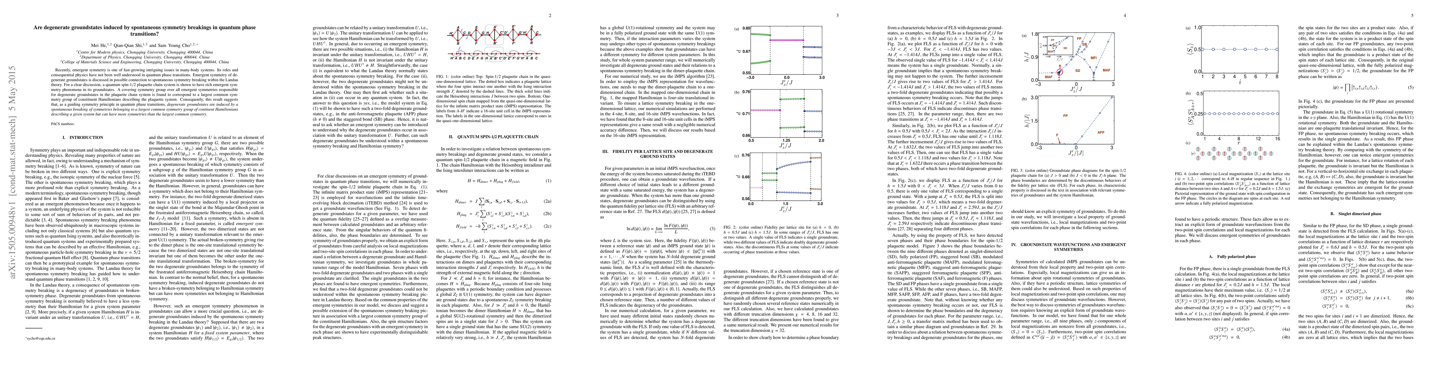 This paper investigates the relationship between emergent symmetry and spontaneous symmetry breaking in quantum phase transitions, using a quantum spin-$1/2$ plaquette chain system as a model. It finds that degenerate groundstates are induced by the breaking of symmetries from the largest common symmetry group of the system's Hamiltonian, suggesting a guiding principle for understanding quantum phase transitions.
