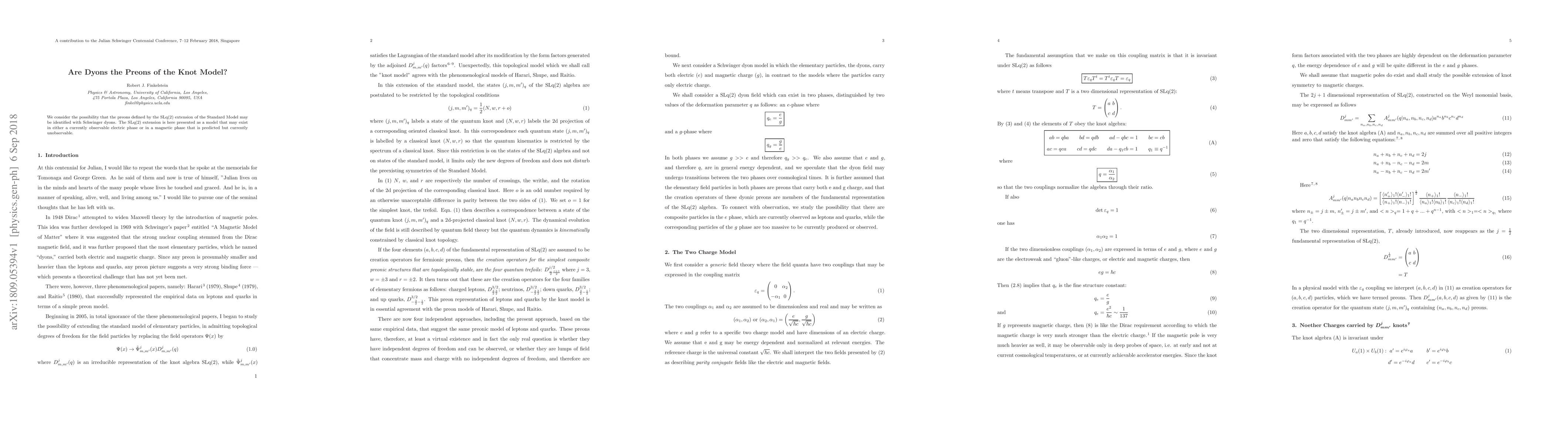Summary: This paper explores the hypothesis that preons, defined by the SLq(2) extension of the Standard Model, could be equivalent to Schwinger dyons, suggesting the SLq(2) model may operate in either an observable electric phase or a currently unobservable magnetic phase.