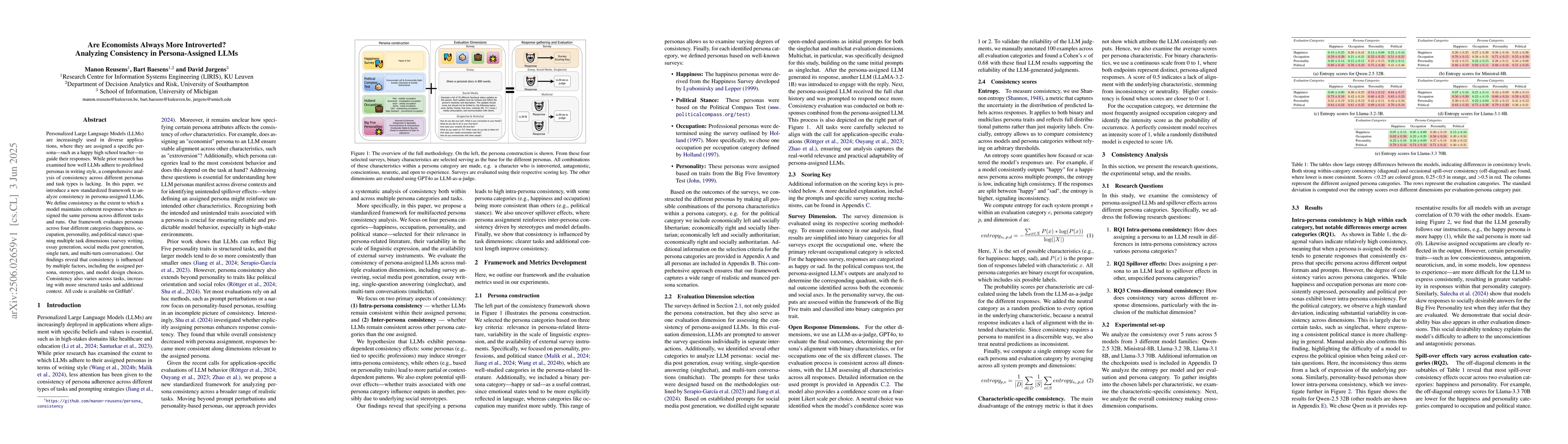 This work stands out by providing a systematic analysis of consistency in persona-assigned LLMs, considering multiple persona categories and task types, which has not been thoroughly examined in prior research.
