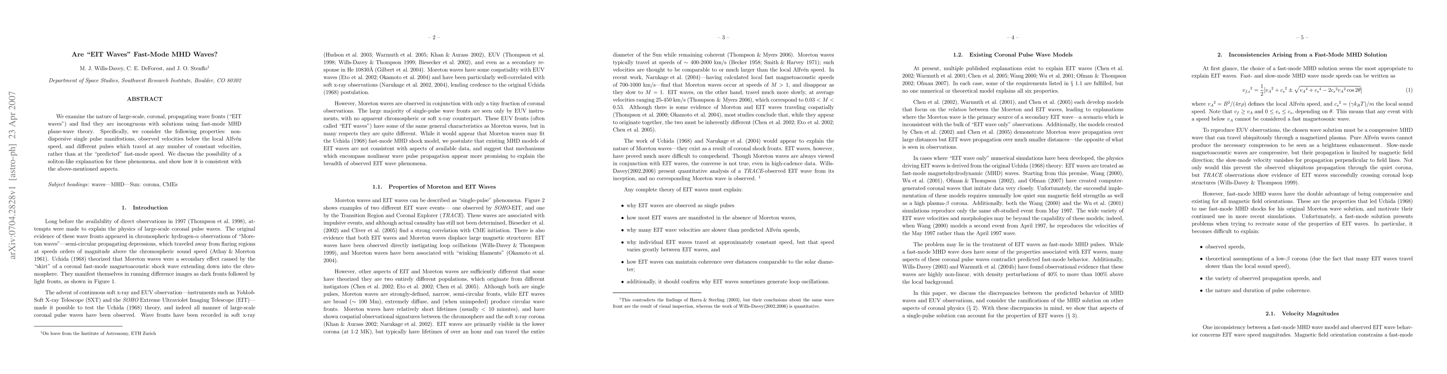 This paper investigates large-scale coronal waves known as "EIT waves," finding they do not align with fast-mode MHD wave theory due to their non-dispersive, sub-Alfven speed, and variable velocities. It proposes a soliton-like explanation as a more consistent alternative.