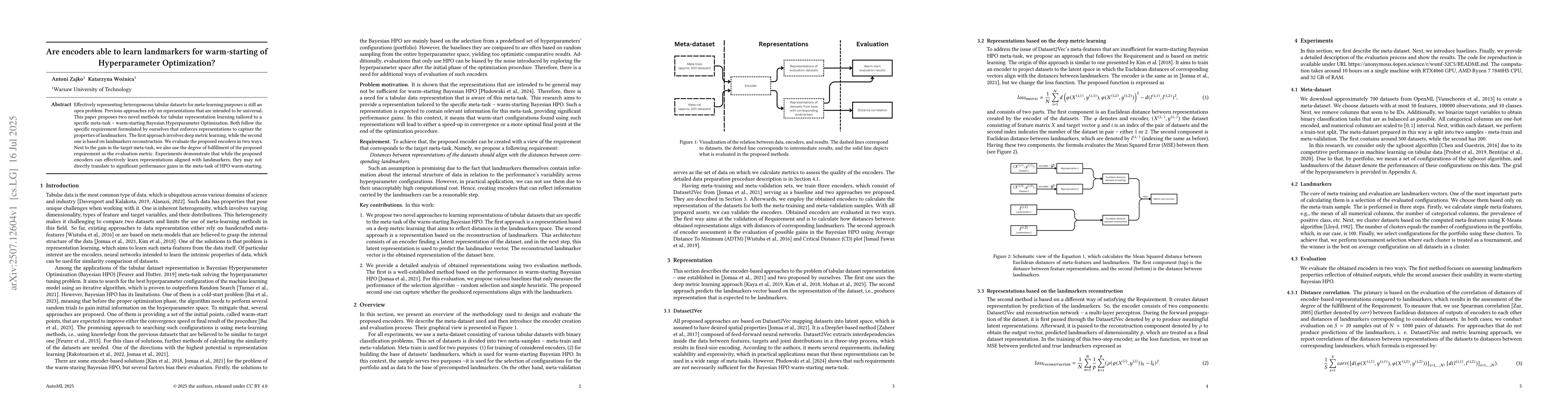 Effectively representing heterogeneous tabular datasets for meta-learning purposes is still an open problem. Previous approaches rely on representations that are intended to be universal. This paper proposes two novel methods for tabular representation learning tailored to a specific meta-task - warm-starting Bayesian Hyperparameter Optimization. Both follow the specific requirement formulated by ourselves that enforces representations to capture the properties of landmarkers. The first approach involves deep metric learning, while the second one is based on landmarkers reconstruction. We evaluate the proposed encoders in two ways. Next to the gain in the target meta-task, we also use the degree of fulfillment of the proposed requirement as the evaluation metric. Experiments demonstrate that while the proposed encoders can effectively learn representations aligned with landmarkers, they may not directly translate to significant performance gains in the meta-task of HPO warm-starting.