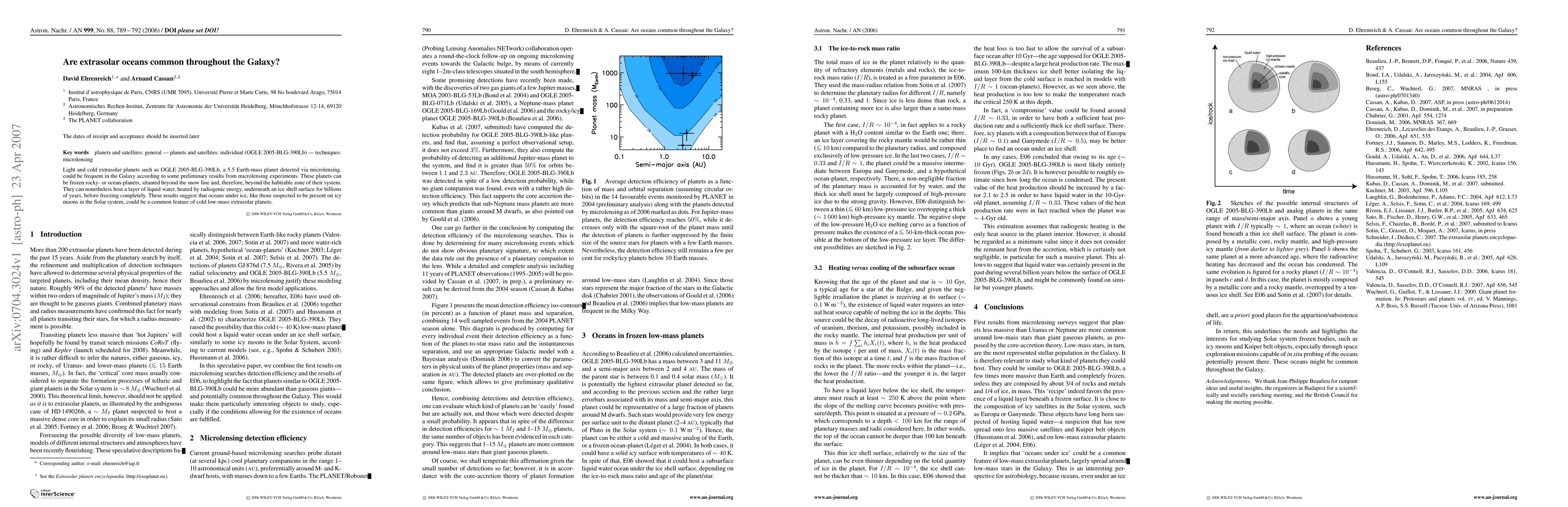 This research suggests that light and cold extrasolar planets, potentially hosting oceans beneath ice shells, may be common in the Galaxy. Preliminary microlensing experiments indicate that such planets could frequently exist beyond the snow line, maintaining liquid water for extended periods.
