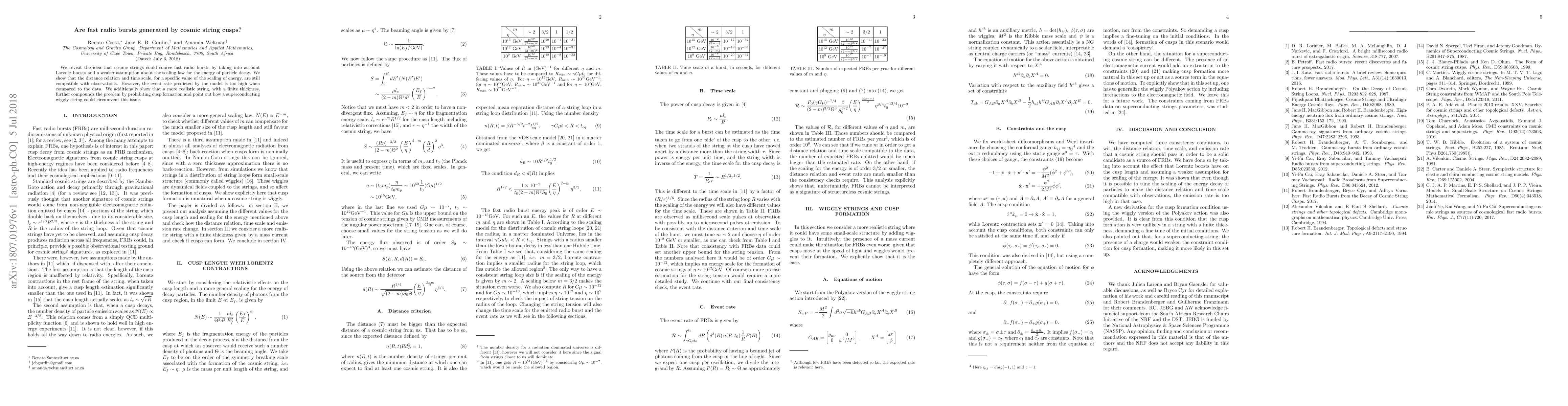 The paper re-examines the hypothesis that cosmic strings might generate fast radio bursts. It finds that certain conditions, like specific energy scaling and Lorentz boosts, could make this theory viable. However, the model predicts an event rate higher than observed, and finite-thickness strings hinder cusp formation. A superconducting wiggly string is suggested as a possible solution.