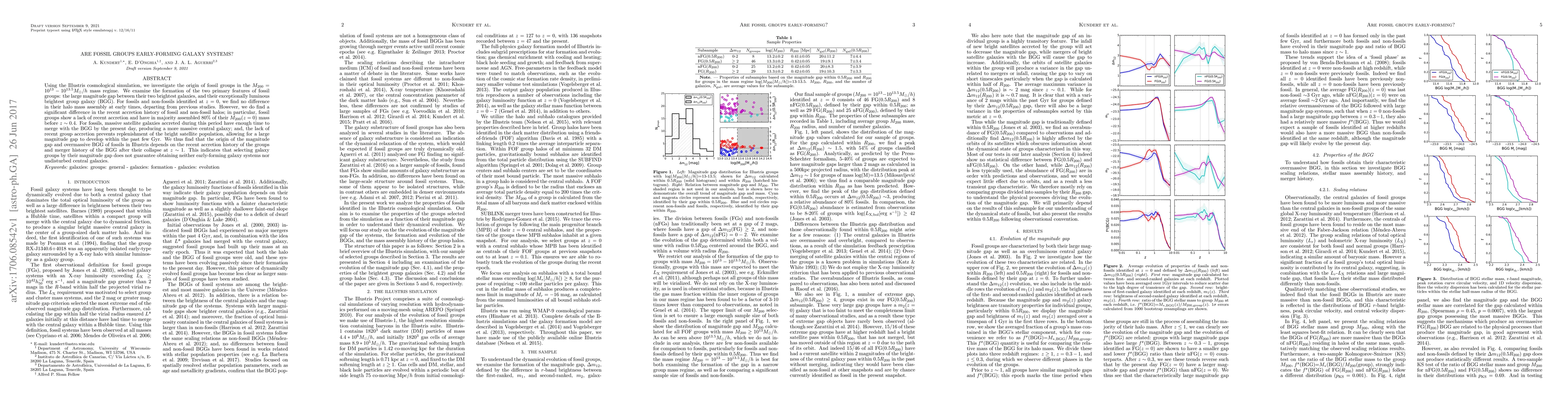 This study using the Illustris simulation finds that fossil groups, characterized by a large magnitude gap and an overmassive brightest group galaxy, primarily formed by the merger of massive satellites with the central galaxy early in the universe. Contrary to previous studies, fossil groups do not differ in early halo mass assembly but show a lack of recent accretion, leading to the development of their distinctive features.
