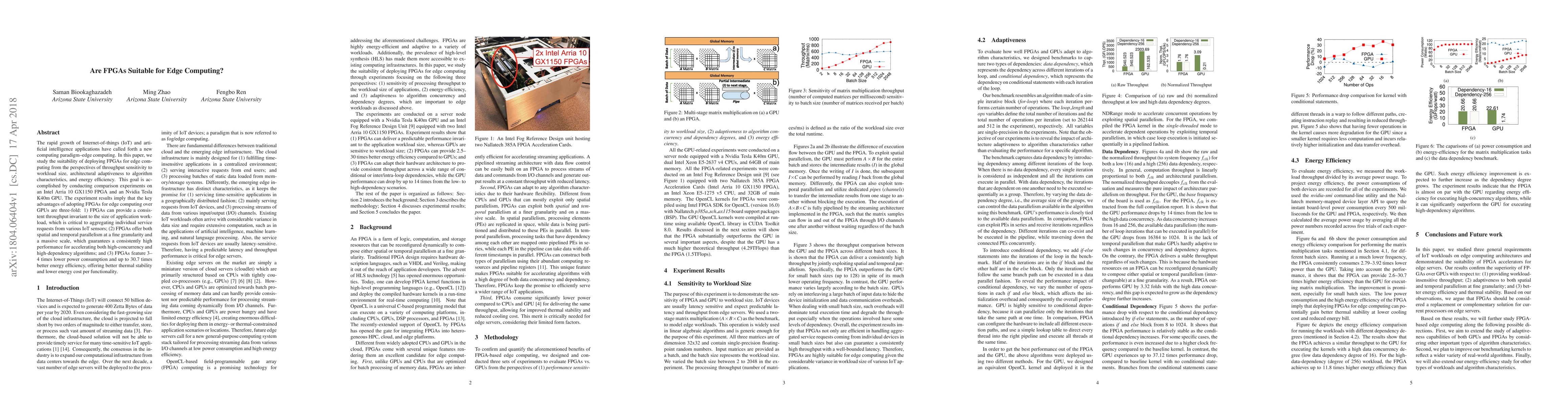 This paper evaluates FPGAs' suitability for edge computing, finding they offer consistent throughput regardless of workload size, high performance due to fine-grained parallelism, and significantly lower energy consumption compared to GPUs.