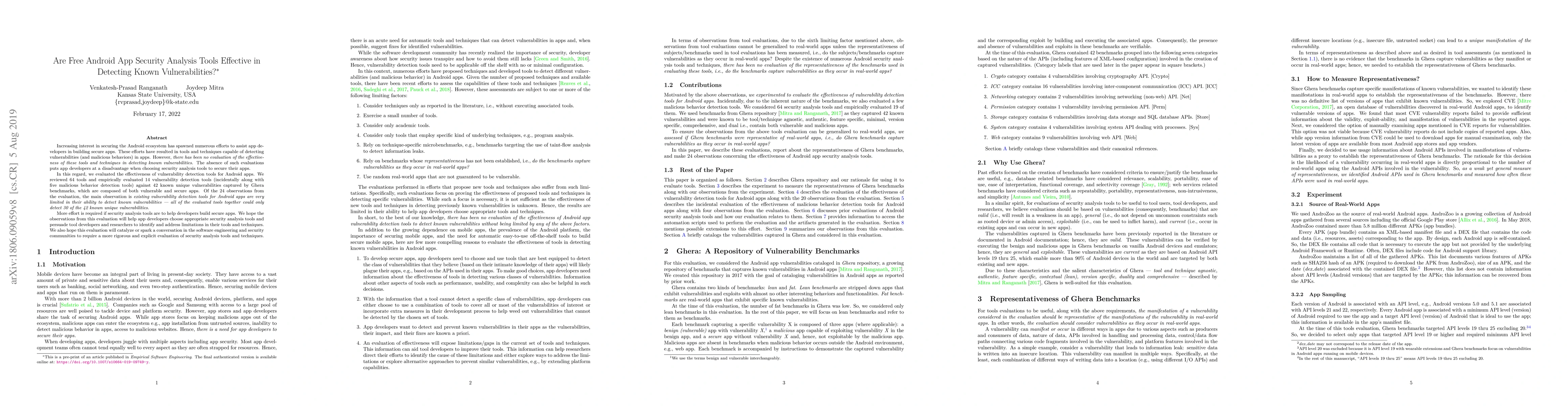 This study evaluates the effectiveness of 14 free Android app security analysis tools in detecting known vulnerabilities, finding that they collectively identified only 30 out of 42 benchmarked vulnerabilities. The research highlights the need for improved tools and more rigorous evaluations to better secure Android apps.