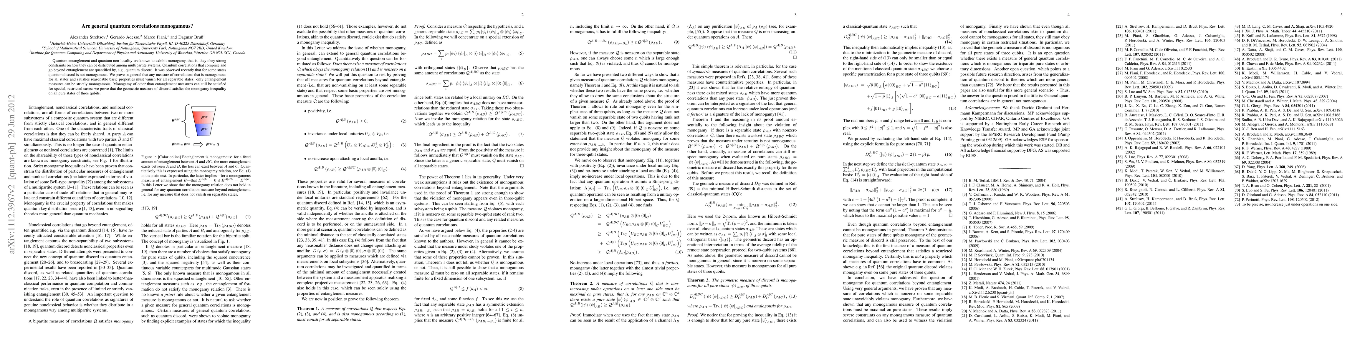 The paper presents a theorem demonstrating that any measure of quantum correlations beyond entanglement that respects basic properties and is monogamous must vanish for all separable states, thereby constraining monogamous measures of quantum correlations.