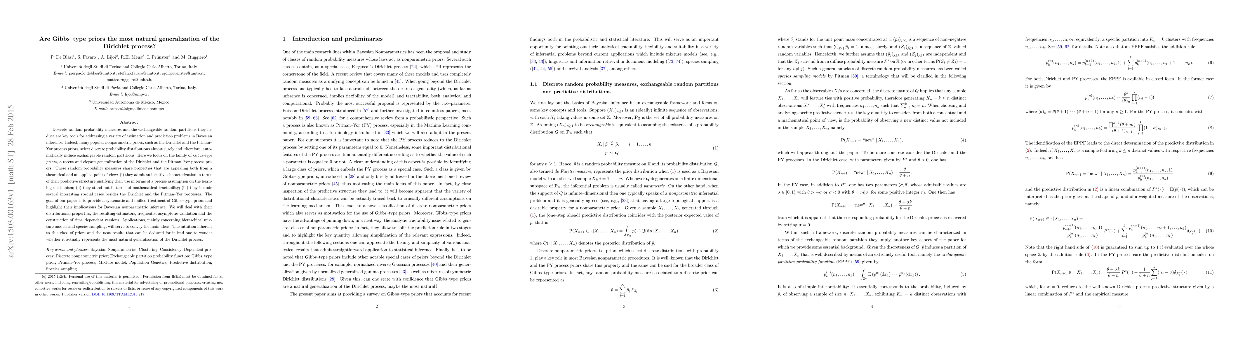 This paper explores Gibbs-type priors as a generalization of the Dirichlet process, highlighting their intuitive predictive structure, mathematical tractability, and inclusion of special cases. It aims to systematically analyze their distributional properties, estimators, and applications in Bayesian nonparametric inference, questioning whether they represent the most natural generalization of the Dirichlet process.
