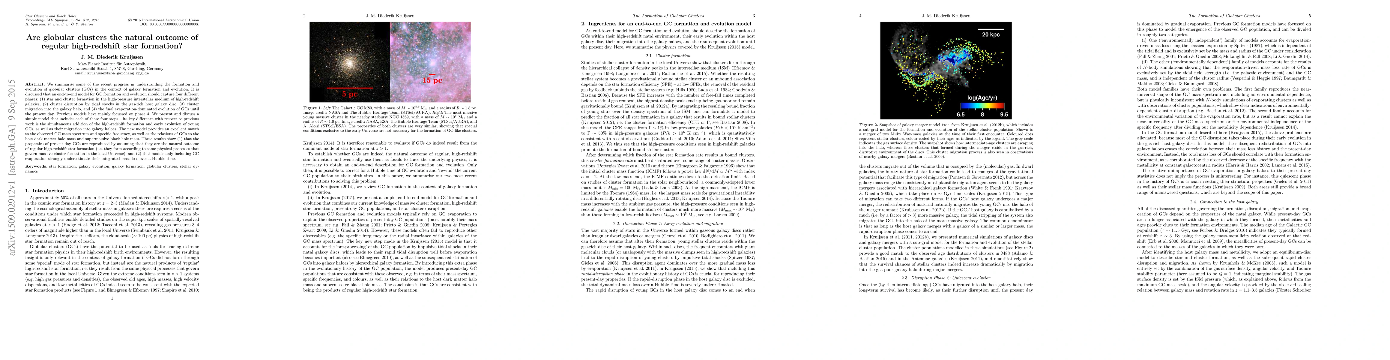 We summarise some of the recent progress in understanding the formation and evolution of globular clusters (GCs) in the context of galaxy formation and evolution. It is discussed that an end-to-end model for GC formation and evolution should capture four different phases: (1) star and cluster formation in the high-pressure interstellar medium of high-redshift galaxies, (2) cluster disruption by tidal shocks in the gas-rich host galaxy disc, (3) cluster migration into the galaxy halo, and (4) the final evaporation-dominated evolution of GCs until the present day. Previous models have mainly focussed on phase 4. We present and discuss a simple model that includes each of these four steps - its key difference with respect to previous work is the simultaneous addition of the high-redshift formation and early evolution of young GCs, as well as their migration into galaxy haloes. The new model provides an excellent match to the observed GC mass spectrum and specific frequency, as well as the relations of GCs to the host dark matter halo mass and supermassive black hole mass. These results show (1) that the properties of present-day GCs are reproduced by assuming that they are the natural outcome of regular high-redshift star formation (i.e. they form according to same physical processes that govern massive cluster formation in the local Universe), and (2) that models only including GC evaporation strongly underestimate their integrated mass loss over a Hubble time.