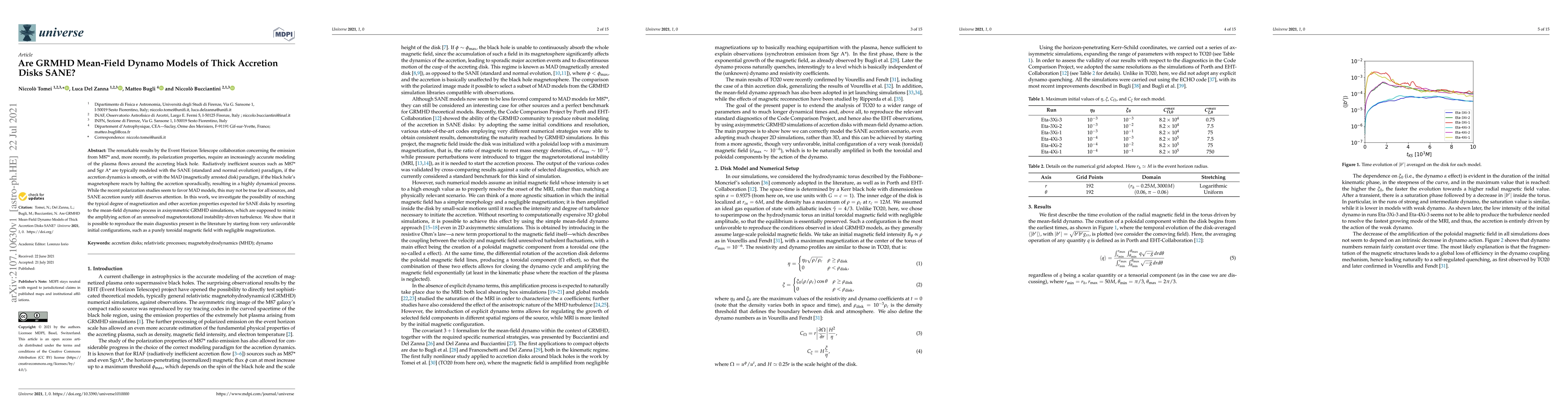 Researchers investigate if GRMHD mean-field dynamo models can replicate SANE accretion dynamics in thick accretion disks, finding that unfavorable initial configurations can still produce accurate results.