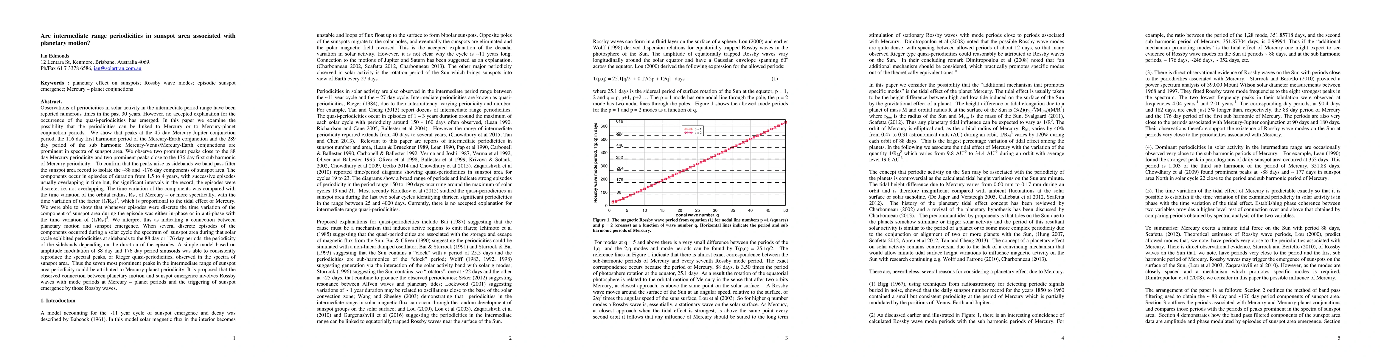 This paper investigates whether intermediate periodicities in sunspot area are linked to Mercury's motion or conjunctions with other planets. The study finds significant peaks in sunspot area spectra corresponding to Mercury-Jupiter, Mercury-Earth, and Mercury-Venus/Mercury-Earth conjunction periods, suggesting a connection between planetary motion and sunspot emergence.