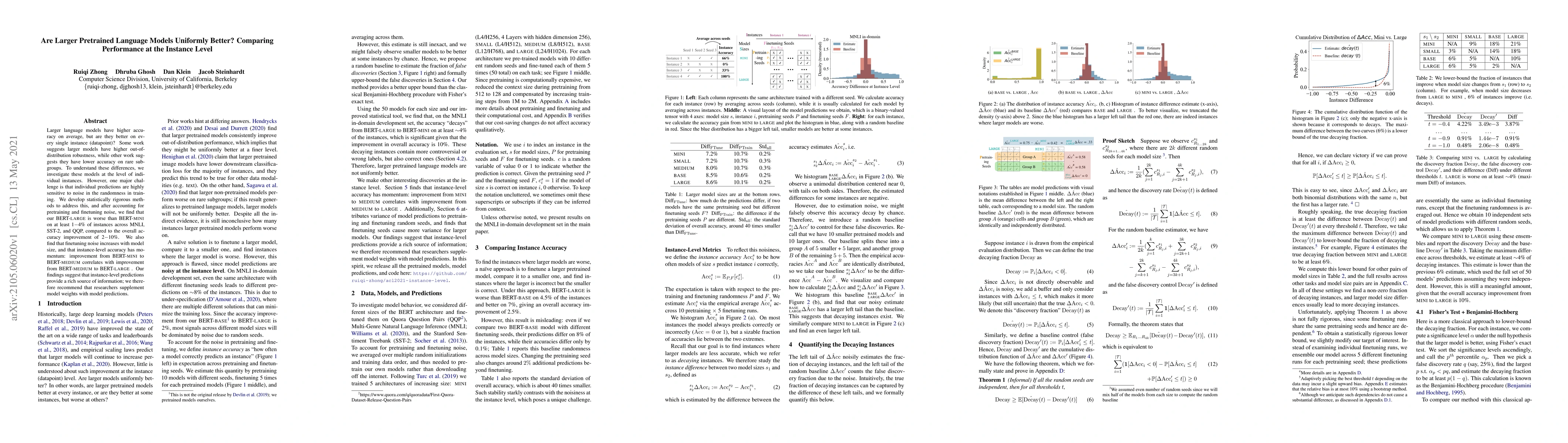 This paper investigates whether larger pretrained language models perform better on every instance, finding that while they improve overall accuracy, they are worse on 1-4% of instances compared to smaller models. The study highlights the importance of considering finetuning noise and instance-level accuracy, recommending that researchers use both model weights and predictions for a more comprehensive evaluation.