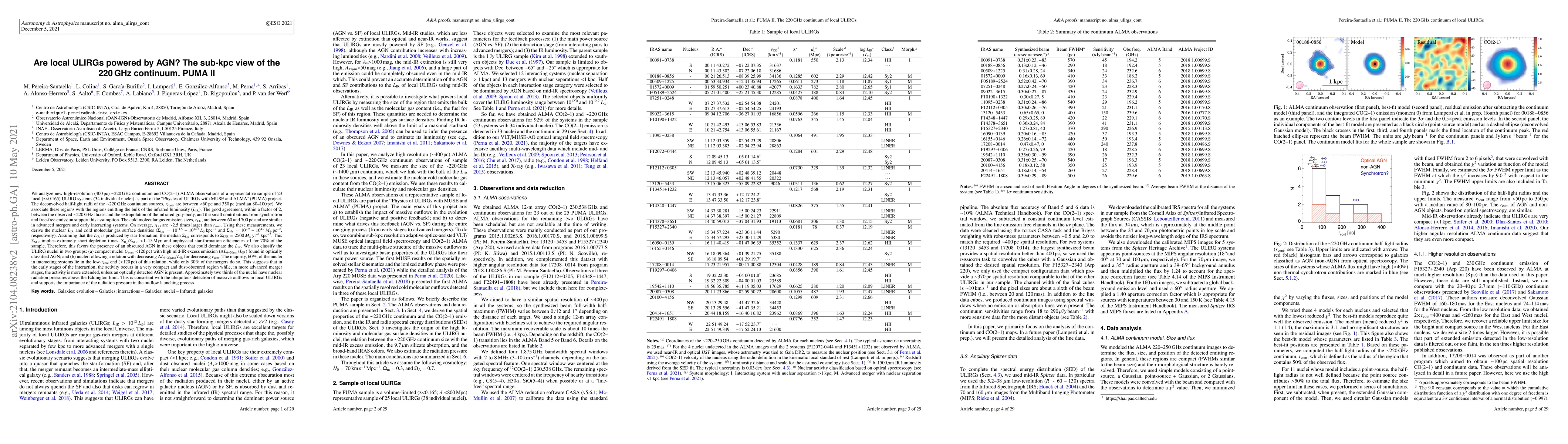 This paper investigates whether local ultra-luminous infrared galaxies (ULIRGs) are powered by active galactic nuclei (AGN) using high-resolution ALMA observations. The study finds that most ULIRGs likely have their infrared luminosity dominated by obscured AGN rather than star formation, given the short inferred depletion times and high star formation efficiencies. The research also identifies two groups of ULIRG nuclei based on their mid-IR excess and size, suggesting early interaction phases involve more compact and obscured activity.