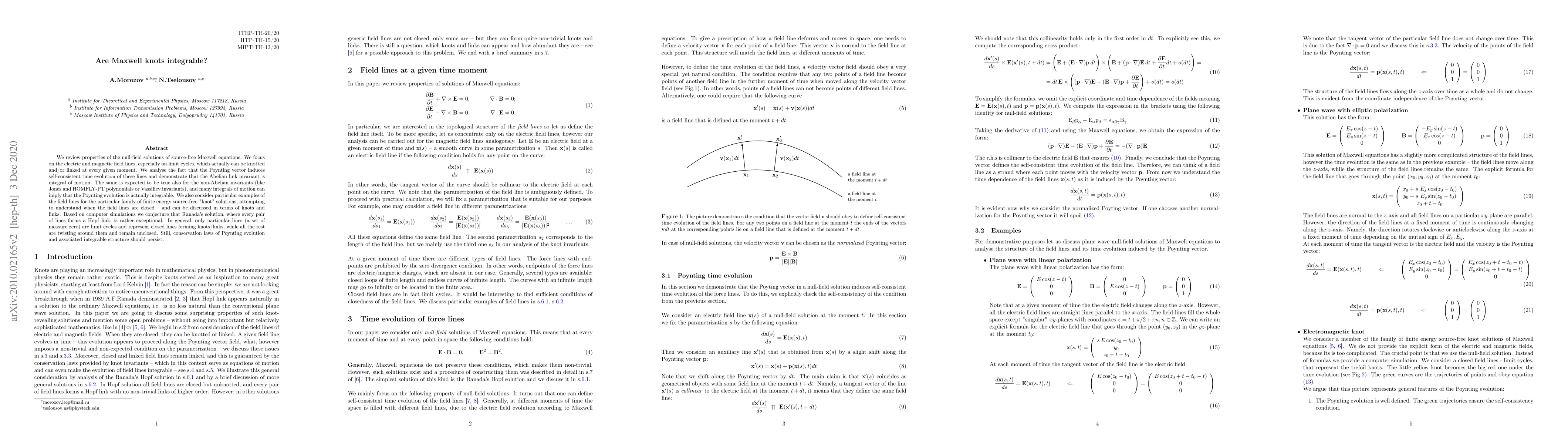 This paper investigates whether Maxwell knots can be considered integrable, finding that the Poynting vector's evolution is related to integrals of motion and conserves certain properties despite knotting and linking in electric and magnetic field lines.