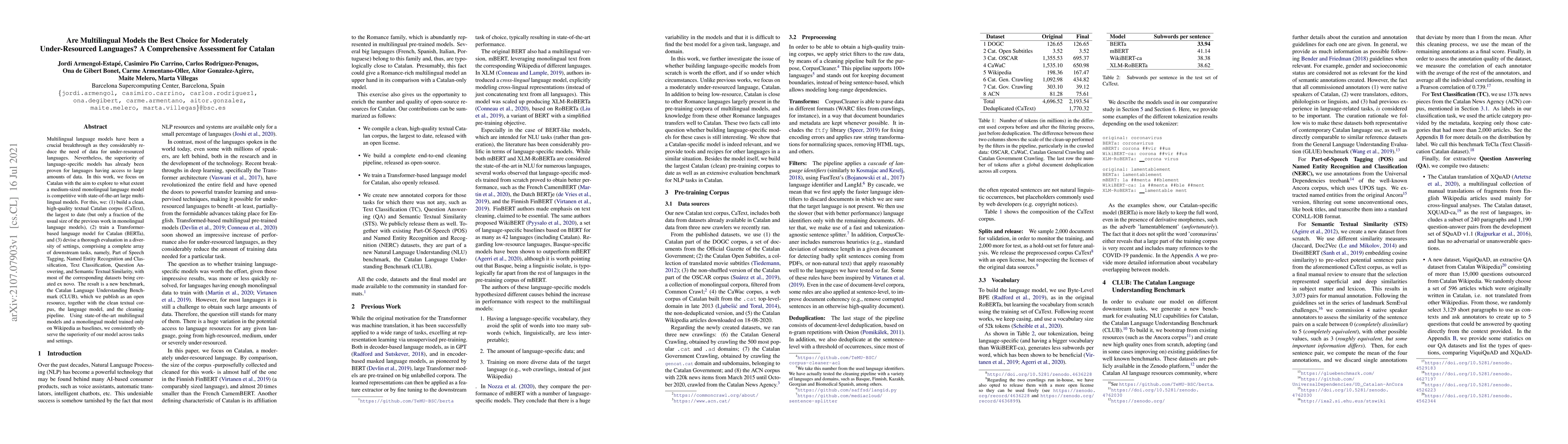 This study assesses whether a medium-sized monolingual language model for Catalan outperforms large multilingual models, finding that the monolingual model, trained on a newly created corpus, consistently excels across various downstream tasks. The research establishes a new benchmark, the Catalan Language Understanding Benchmark (CLUB), alongside the corpus and model.