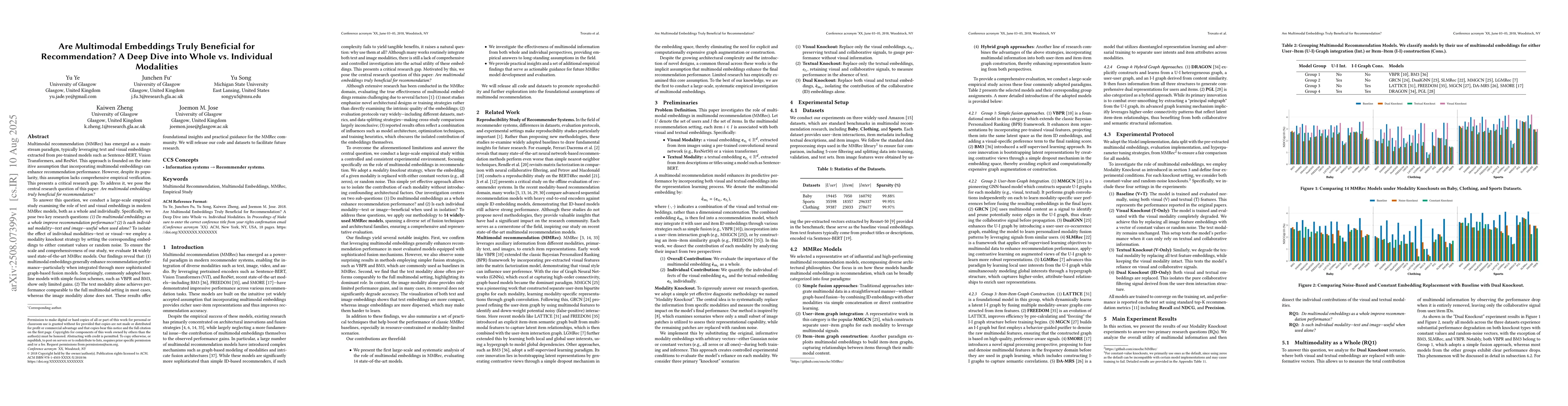 The paper conducts a large-scale empirical study examining the role of text and visual embeddings in modern multimodal recommendation (MMRec) models, both as a whole and individually. It employs a modality knockout strategy by setting the corresponding embeddings to either constant values or random noise to isolate the effect of individual modalities.
