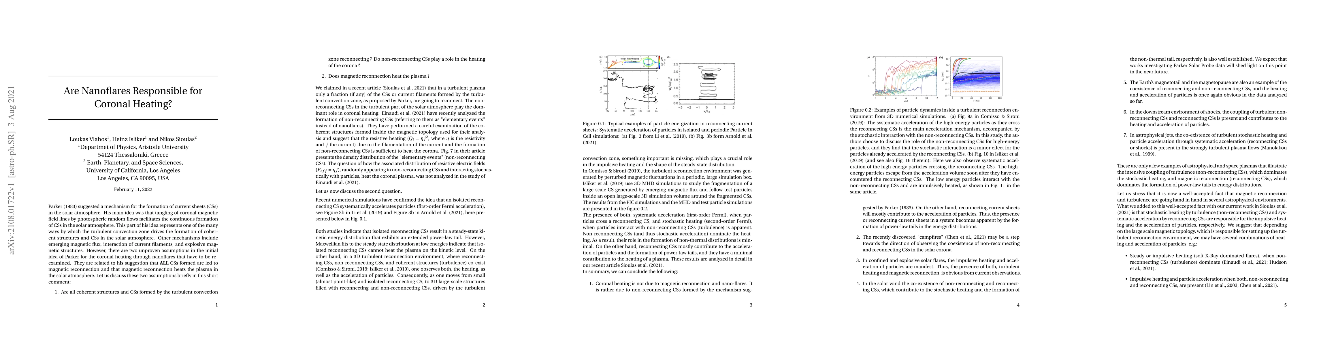 Parker (1983) suggested a mechanism for the formation of current sheets (CSs) in the solar atmosphere. His main idea was that the tangling of coronal magnetic field lines by photospheric random flows facilitates the continuous formation of CSs in the solar atmosphere. This part of his idea represents one of the many ways by which the turbulent convection zone drives the formation of coherent structures and CSs in the solar atmosphere. Other mechanisms include emerging magnetic flux, interaction of current filaments, and explosive magnetic structures. However, there are two unproven assumptions in the initial idea of Parker for the coronal heating through nanoflares that must be re-examined. They are related to his suggestion that {ALL CSs formed are led to magnetic reconnection and that magnetic reconnection heats the plasma in the solar atmosphere. Let us discuss these two assumptions briefly in this short comment: (1) Are ALL coherent structures and CSs formed by the turbulent convection zone reconnecting? Does turbulence associated with non-reconnecting CSs play a role in the heating of the corona? (2) Does magnetic reconnection heat the plasma?