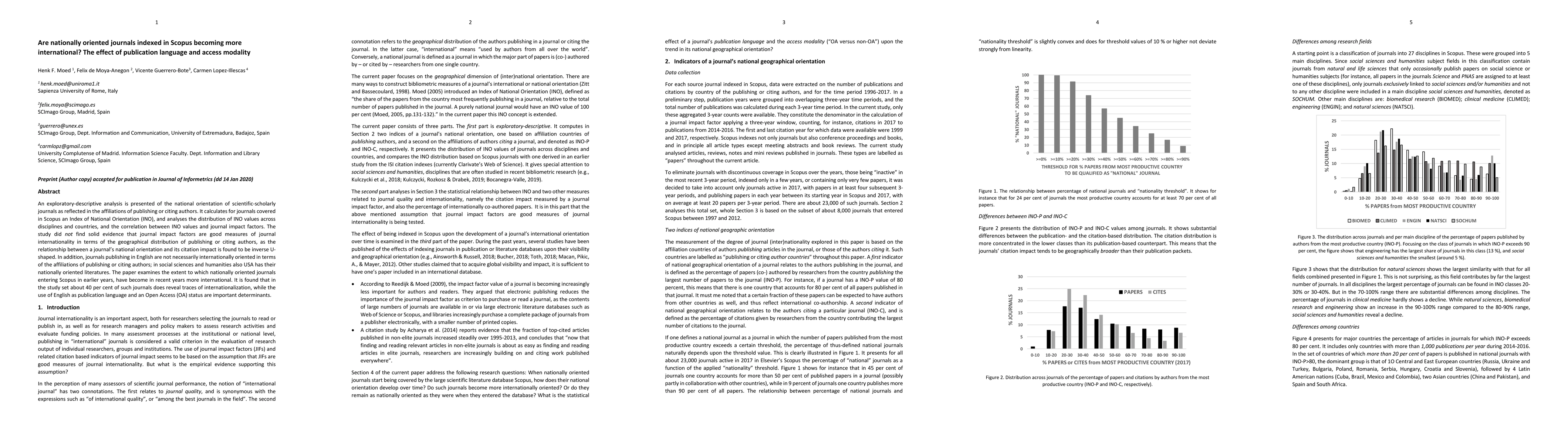 This study explores the national orientation of journals indexed in Scopus, finding that while about 40% of earlier nationally oriented journals show signs of internationalization, language and access modality significantly influence this trend. The research highlights that English-language journals and those with Open Access are more likely to exhibit international author affiliations.