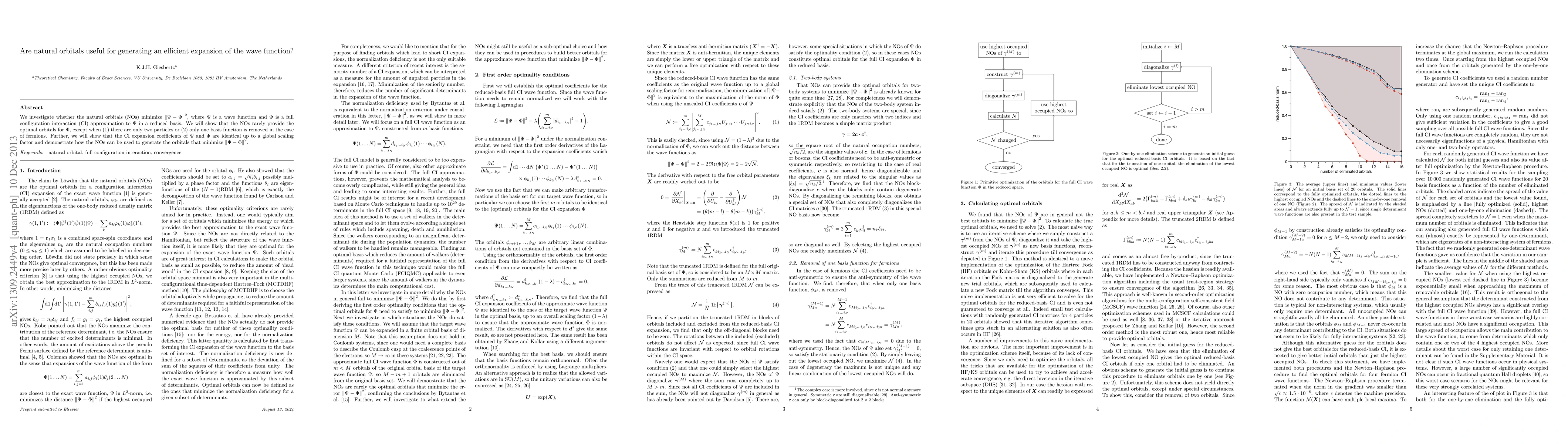 We investigate whether the natural orbitals (NOs) minimize $\lVert\Psi - \Phi\rVert^2$, where $\Psi$ is a wave function and $\Phi$ is a full configuration interaction (CI) approximation to $\Psi$ in a truncated basis. We will show that the NOs rarely provide the optimal orbitals for $\Phi$, except when (1) there are only two particles or (2) only one basis function is removed in the case of fermions. Further, we will show that the CI expansion coefficients of $\Psi$ and $\Phi$ are identical up to a global scaling factor and demonstrate how the NOs can be used to generate the orbitals that minimize $\lVert\Psi - \Phi\rVert^2$.