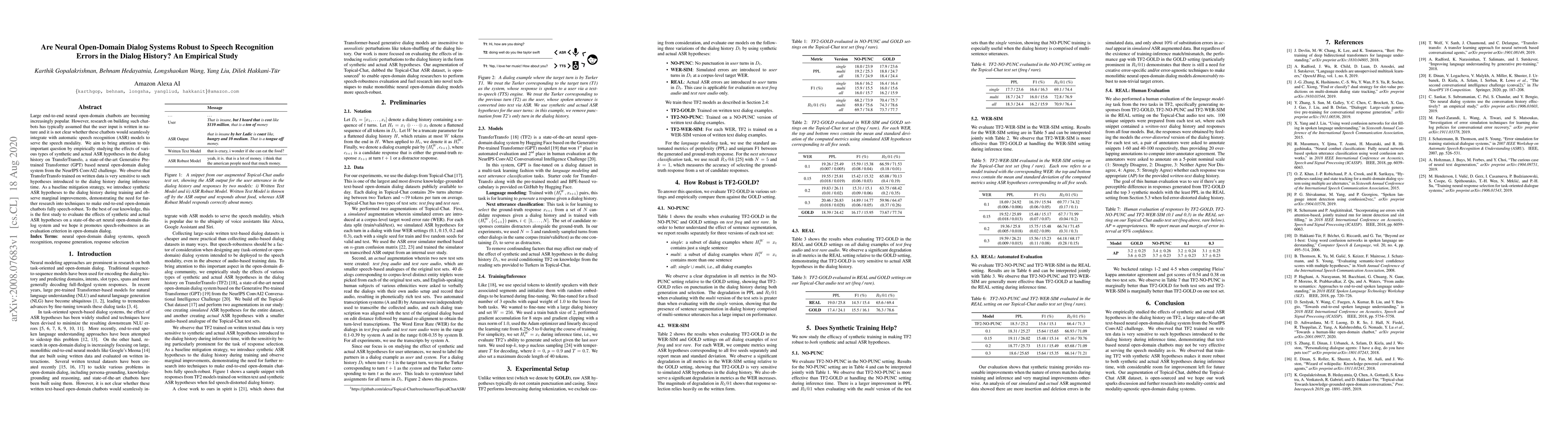 This study investigates the robustness of a state-of-the-art neural open-domain dialog system, TransferTransfo, to speech recognition errors in the dialog history. The results show that the system is sensitive to such errors, highlighting the need for further research to improve speech-modality integration.