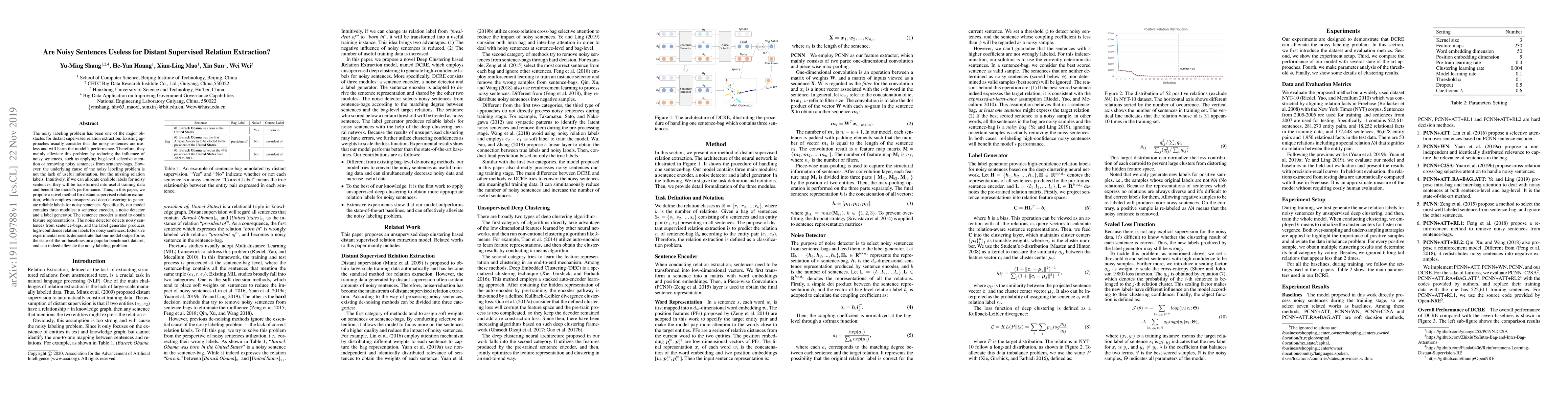 The noisy labeling problem has been one of the major obstacles for distant supervised relation extraction. Existing approaches usually consider that the noisy sentences are useless and will harm the model's performance. Therefore, they mainly alleviate this problem by reducing the influence of noisy sentences, such as applying bag-level selective attention or removing noisy sentences from sentence-bags. However, the underlying cause of the noisy labeling problem is not the lack of useful information, but the missing relation labels. Intuitively, if we can allocate credible labels for noisy sentences, they will be transformed into useful training data and benefit the model's performance. Thus, in this paper, we propose a novel method for distant supervised relation extraction, which employs unsupervised deep clustering to generate reliable labels for noisy sentences. Specifically, our model contains three modules: a sentence encoder, a noise detector and a label generator. The sentence encoder is used to obtain feature representations. The noise detector detects noisy sentences from sentence-bags, and the label generator produces high-confidence relation labels for noisy sentences. Extensive experimental results demonstrate that our model outperforms the state-of-the-art baselines on a popular benchmark dataset, and can indeed alleviate the noisy labeling problem.