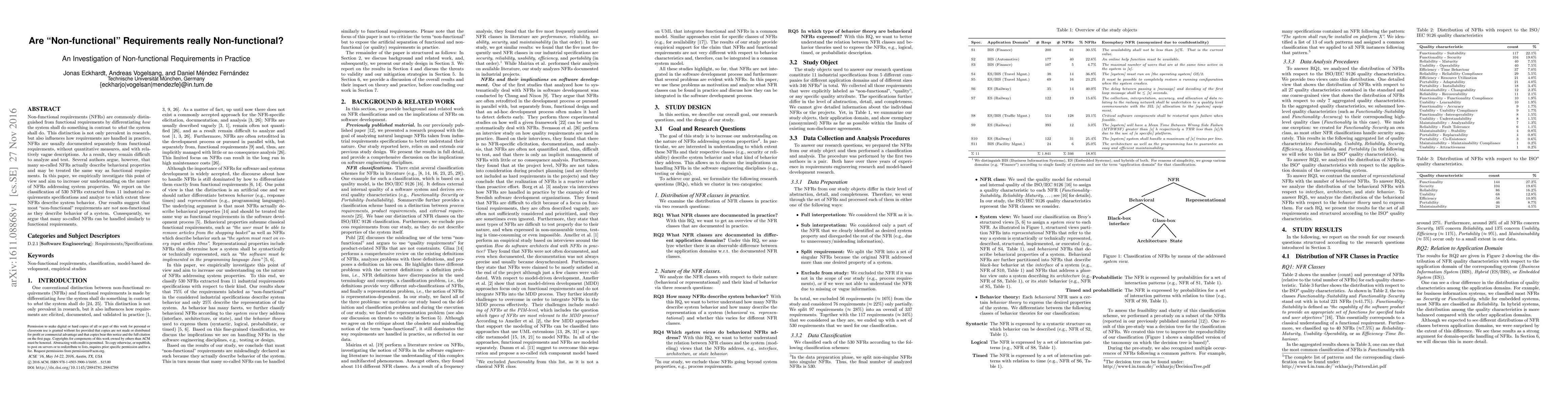This paper investigates whether "non-functional" requirements (NFRs) truly differ from functional requirements, finding that most NFRs describe system behavior rather than properties. The study concludes that many NFRs can be treated similarly to functional requirements.