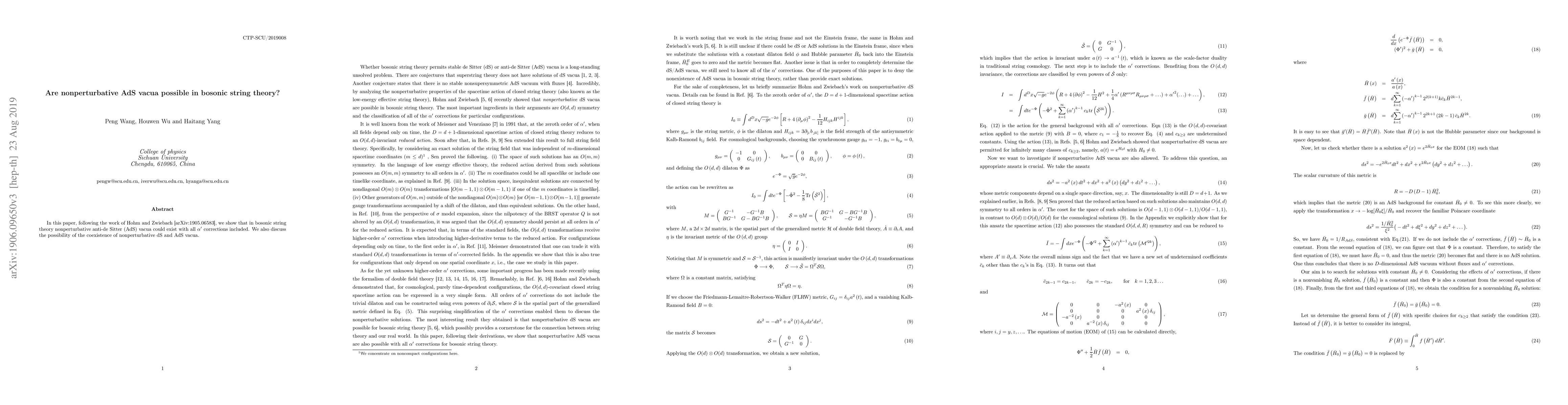 In this paper, following the work of Hohm and Zwiebach [arXiv:1905.06583], we show that in bosonic string theory nonperturbative anti-de Sitter (AdS) vacua could exist with all $\alpha^{\prime}$ corrections included. We also discuss the possibility of the coexistence of nonperturbative dS and AdS vacua.