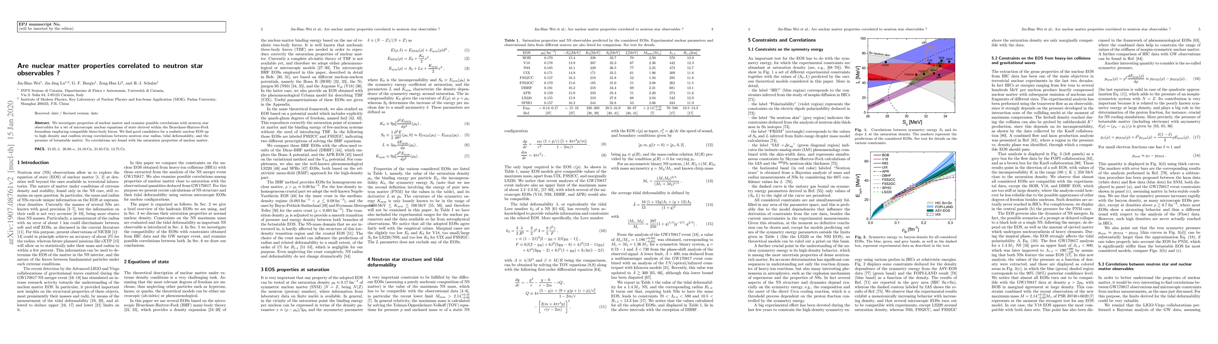 This paper explores nuclear matter properties and their correlations with neutron star observables using microscopic nuclear equations of state derived from the Brueckner-Hartree-Fock formalism. It confirms strong correlations between neutron star radius, tidal deformability, and betastable matter pressure, but finds no such correlations with nuclear matter saturation properties.